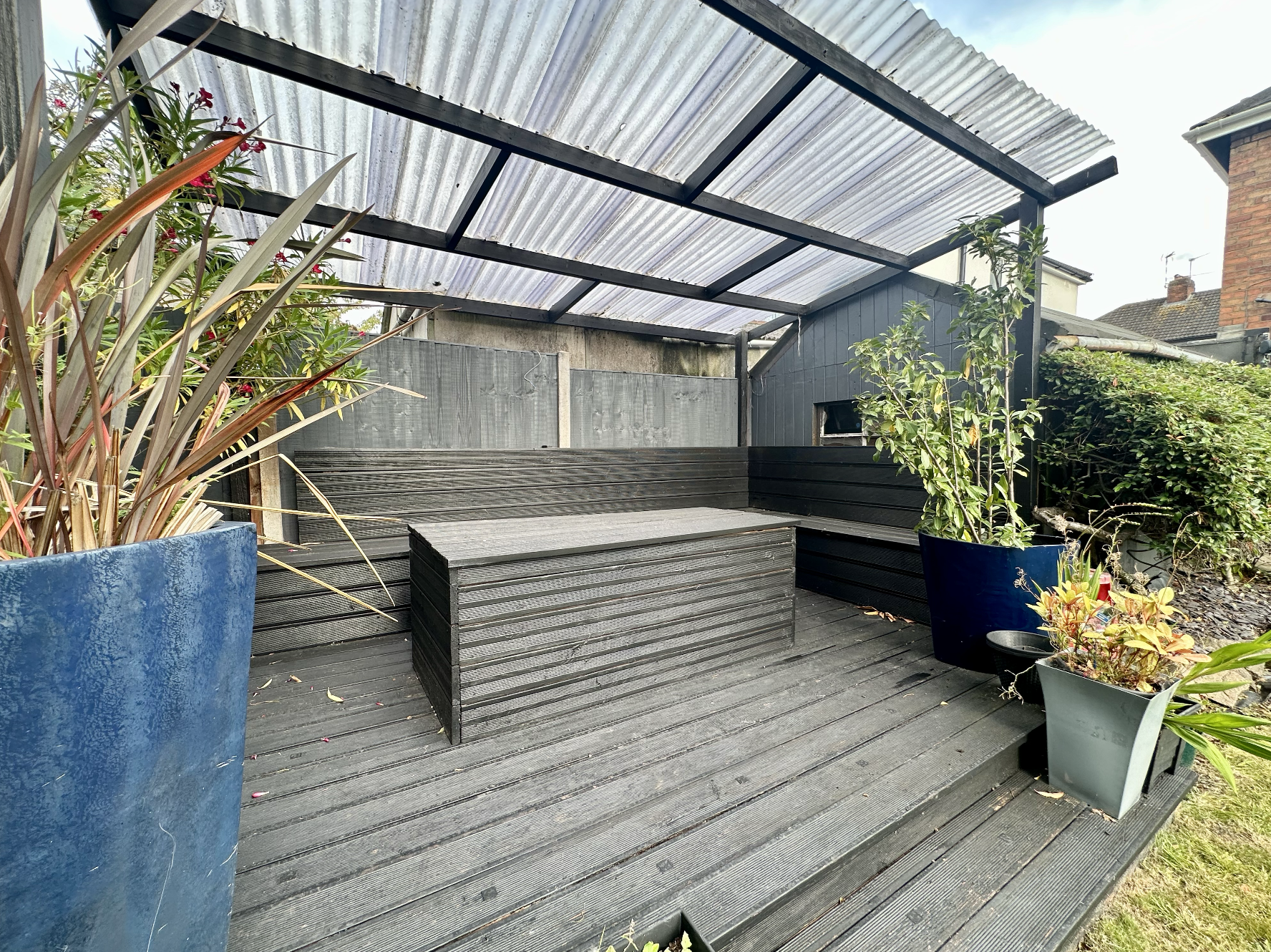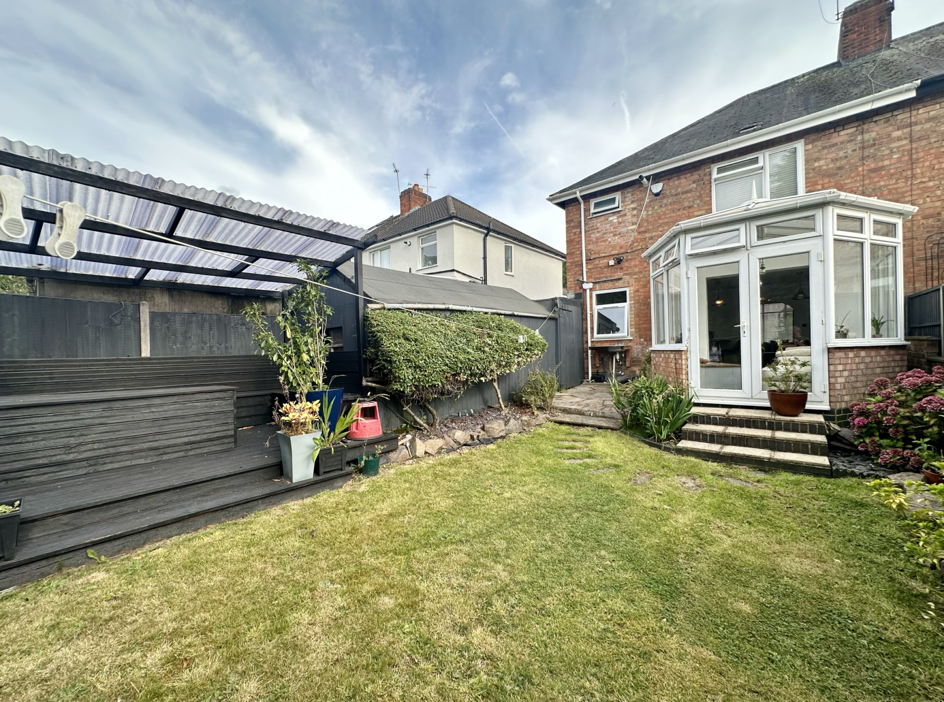 Externally, the property offers off-road parking at the front, while the rear boasts a private garden with mature planting and a well-maintained lawn. A decked area with seating provides a secluded spot for outdoor dining and relaxation.