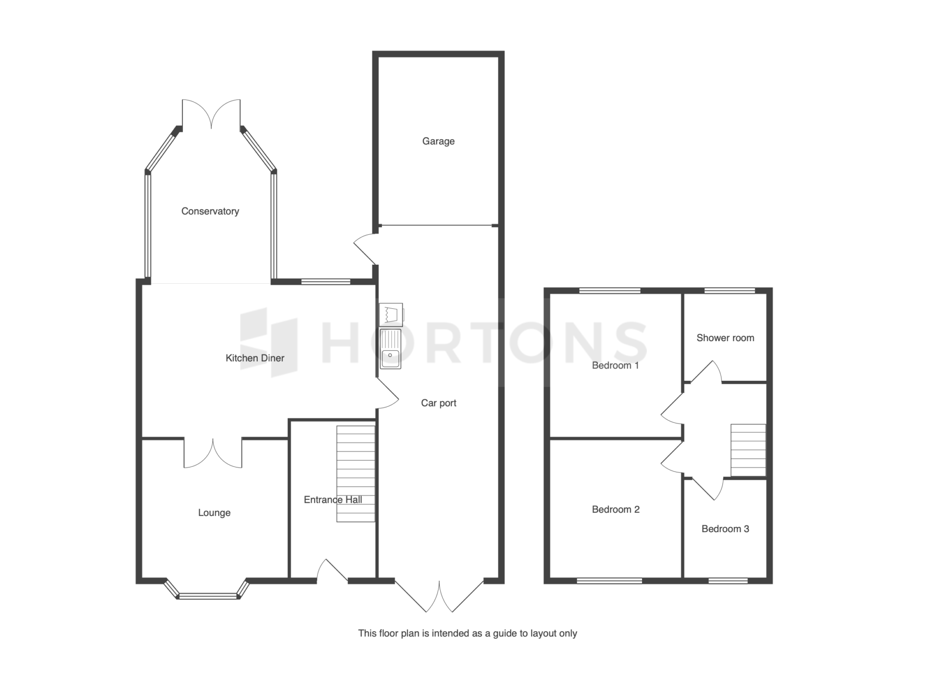Upon entering, you are welcomed into an inviting entrance hall with access to the staircase leading to the first floor. The lounge, accessible from the hall, opens up to the spacious kitchen-diner through elegant French doors, which then leads into the bright and airy conservatory. The kitchen also provides convenient access to the covered carport, which includes a kitchenette with plumbing for utilities, offering a practical and versatile workspace. Additionally, the carport connects to a detached single garage.