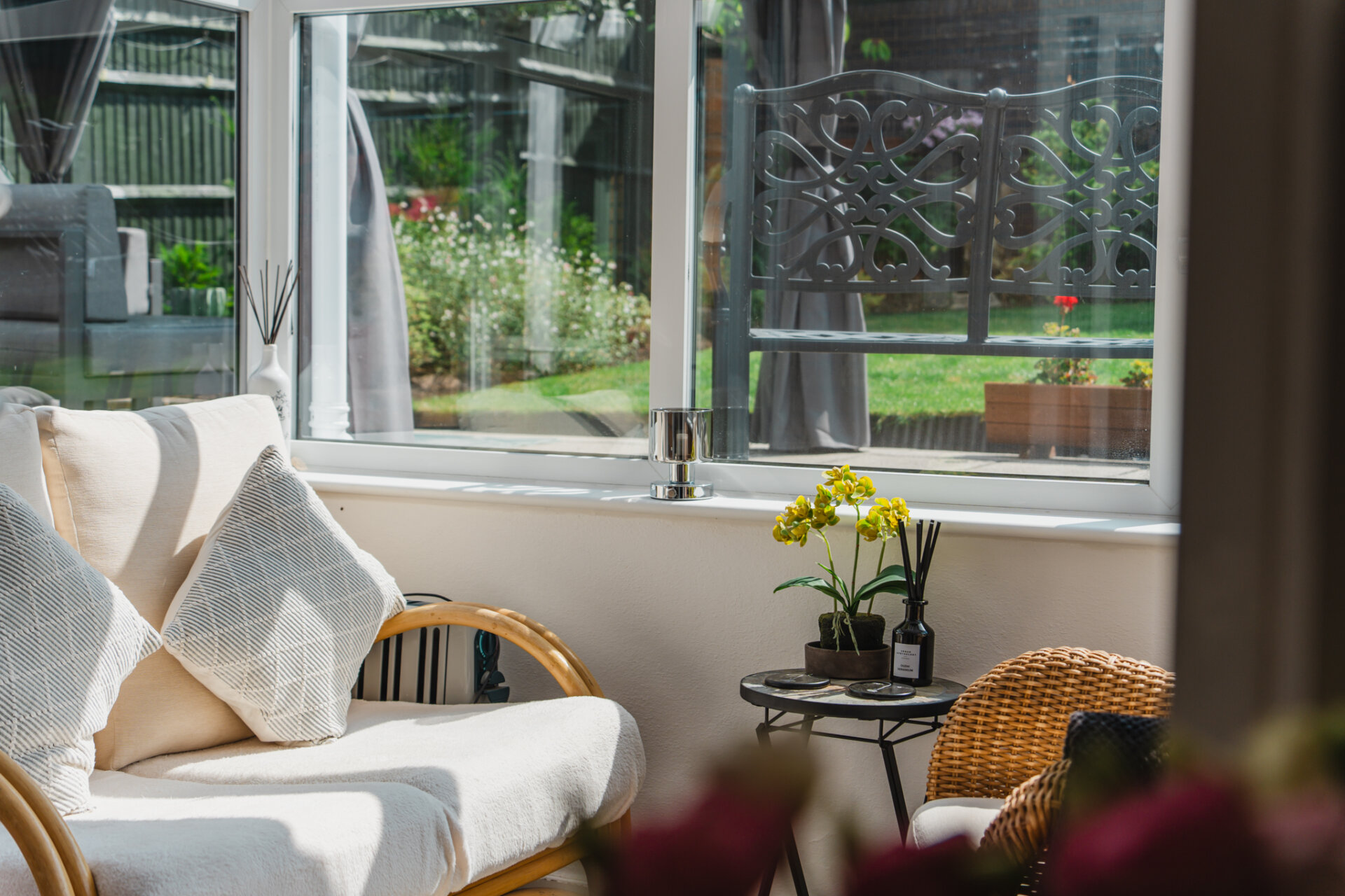 The lounge diner spans the full width of the home and is flooded with natural light from both French doors and sliding patio doors. The dining area is perfectly placed in front of the French doors, creating a lovely setting for everyday meals or entertaining, while the living area is arranged around a feature gas fireplace, making it feel warm and inviting. The adjoining conservatory provides another versatile living space – ideal for enjoying the garden views all year round.