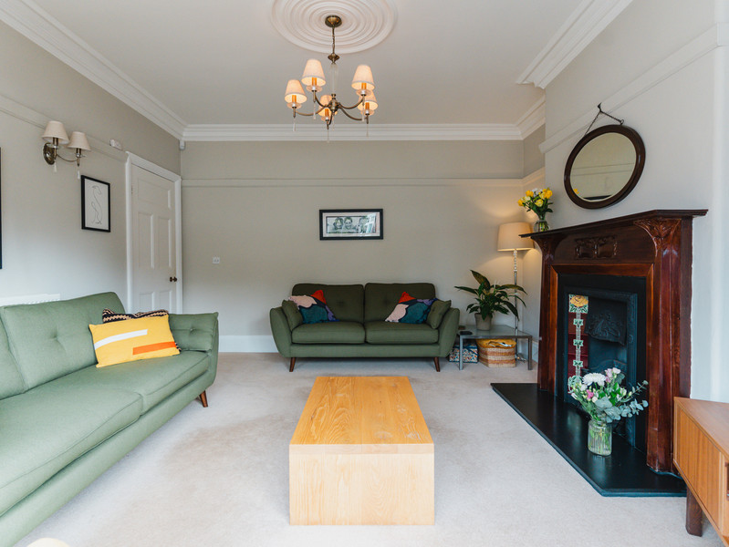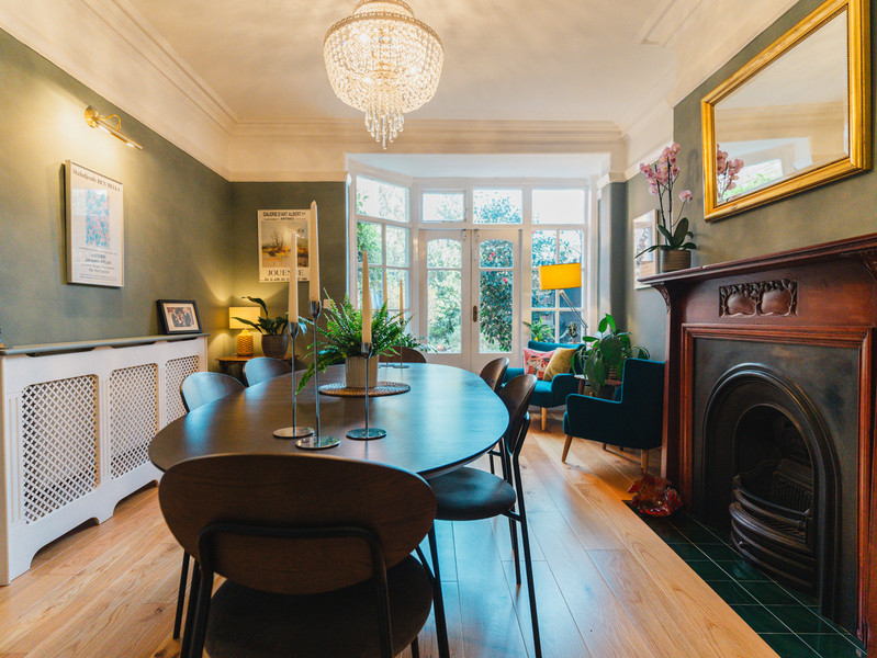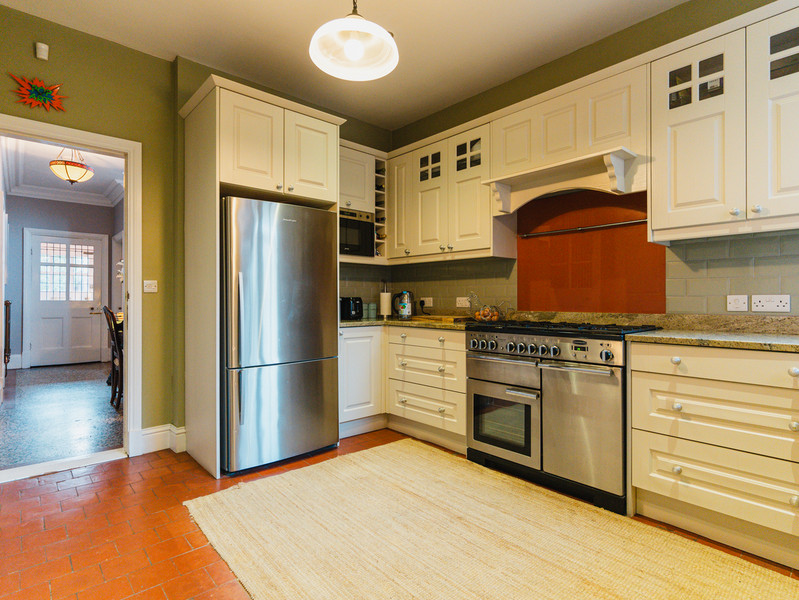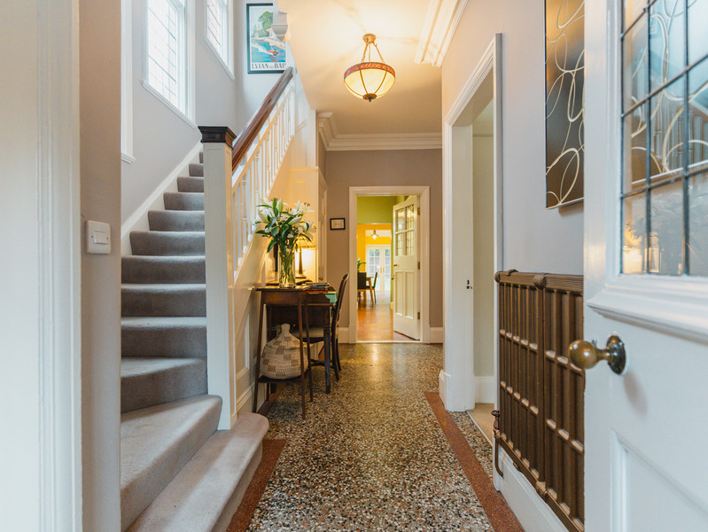 Entry through an original timber door with leaded glazed inserts; an entrance porch opens to a wide entrance hall complete with Terrazzo tiled flooring delicately links the downstairs accommodation together, boasting a Cuban mahogany bannister, decorative ceiling rose and original panelled cast-iron radiators. Painted in a soft grey, the hallway leads into a beautiful shaker-style breakfast kitchen and two reception rooms. The principle drawing room is positioned to the front of the downstairs living space and offers a large timber monkey-tail bay-window to the front aspect, allowing natural light to take centre stage filling the space effortlessly throughout the downstairs accommodation. A large cast-iron fireplace with mahogany surround serves as a stunning focal point, whilst the space pays homage to the era it was built in; embellished with decorative covings, ogee skirting boards and original ceiling roses. A second reception room is large in size, configured with a second cast iron feature fireplace to the centre, with the addition of solid oak flooring and double-timber Scottish pine doors leading to a mature, incredibly private East-facing garden. To the rear of the property and with no expense spared, a meticulously designed shaker-style breakfast kitchen is positioned boasting original quarry styled terracotta flooring and granite worktops. A large Rangemaster oven is positioned to the centre of the space, coupled with sufficient eye-level base and wall units; tiled splash-back and space for all relevant appliances to include Bosch dishwasher and Fisher & Paykel freestanding fridge freezer. A clever modification to the rear has curated a separate scullery area and utility room complete with mosaic Victorian inspired flooring and homing the washing machine, dryer, large ceramic Belfast-sink with an additional w/c complete with double-glazed uPVC French doors offering convenient access to the garden. A further cloakroom completes the downstairs accommodation.