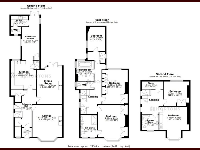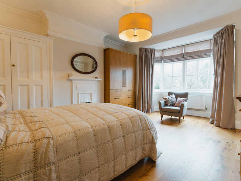 With a set of three original lattice leaded, full height windows running up the stairs with secondary internal glazing, the first floor comprises three double bedrooms and a family bathroom. The largest of the first floor bedrooms sits at the front of the plan boasting solid oak flooring, bespoke fitted wardrobes and an original cast iron fireplace on a tiled hearth with timber surround and treetop views through a pair of timber framed lattice windows within the projecting bay window. An addition to the master bedroom is a stylishly appointed four piece en-suite, complete with Porcelanosa tiled flooring and a suite comprising of low flush WC, double vanity units and a walk-in double sized rainfall shower. The second bedroom also retains period features to include a cast iron fireplace, stripped wooden flooring and fitted wardrobes, whilst offering a particularly attractive leafy rear view. A third and final bedroom is located to the rear of the first floor, previously serving as the maid's quarters with stairs leading down to the kitchen. This space includes an original cast-iron open fireplace and uPVC double glazed window to the side aspect. A spectacular three-piece family bathroom offers original timber framed lattice windows to rear and side aspects, a large double airing cupboard homing the newly installed Worcester combi boiler (approximately 4 months old), wash hand basin set in vanity unit with chrome waterfall tap over and a large step in bath with tiled surround, chrome waterfall tap and hand held shower attachment. A further w/c completes the first floor accommodation.