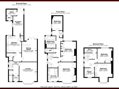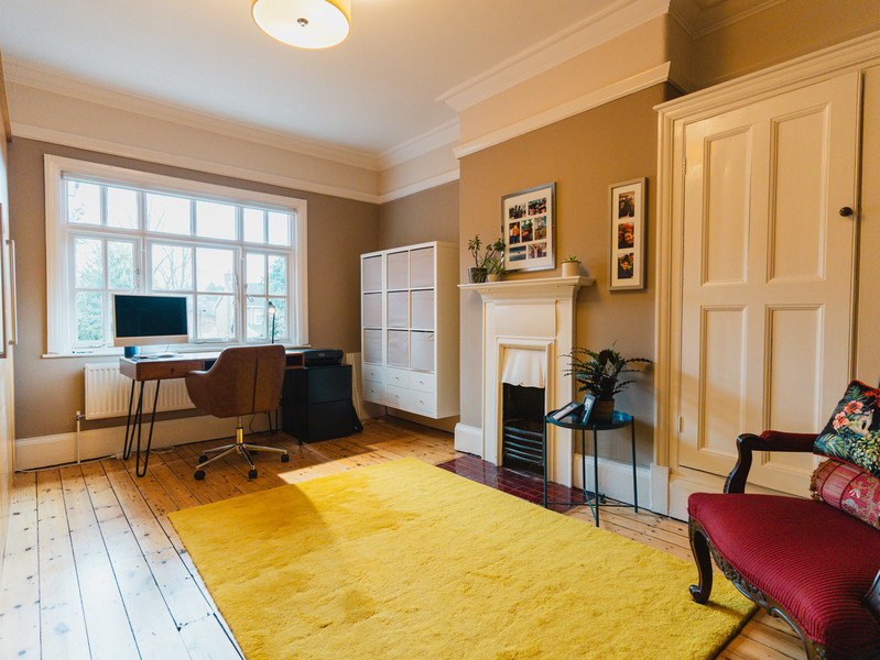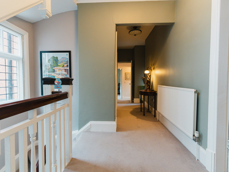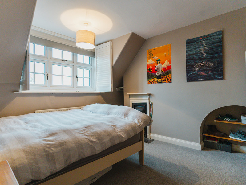 A second floor with a set of three original lattice leaded full height windows running up the stairs, with secondary internal glazing opens to two further double bedrooms. The larger of the two is well configured with a fully functional kitchenette, stripped timber flooring and an original cast iron open fireplace and a large bay-window with far-reaching views of Stoneygate and beyond. A fifth and final bedroom is generous in size and provides sufficient space for free-standing furniture coupled with an original cast-iron fireplace and stripped timber flooring with far-reaching views of Leicester city and beyond. A newly refurbished three-piece shower-room completes the accommodation on offer.