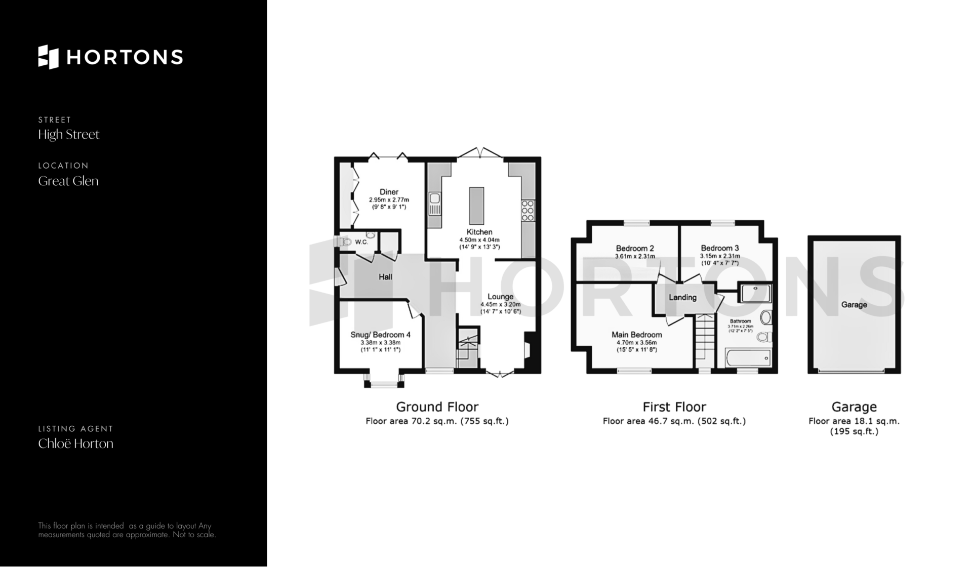 Ground floor: 70.2 sq.m. (755 sq.ft.) First floor: 46.7 sq.m. (502 sq.ft.) Garage: 18.1 sq.m. (195 sq.ft.) Total: 135.0 sq.m. (1,452 sq.ft.)