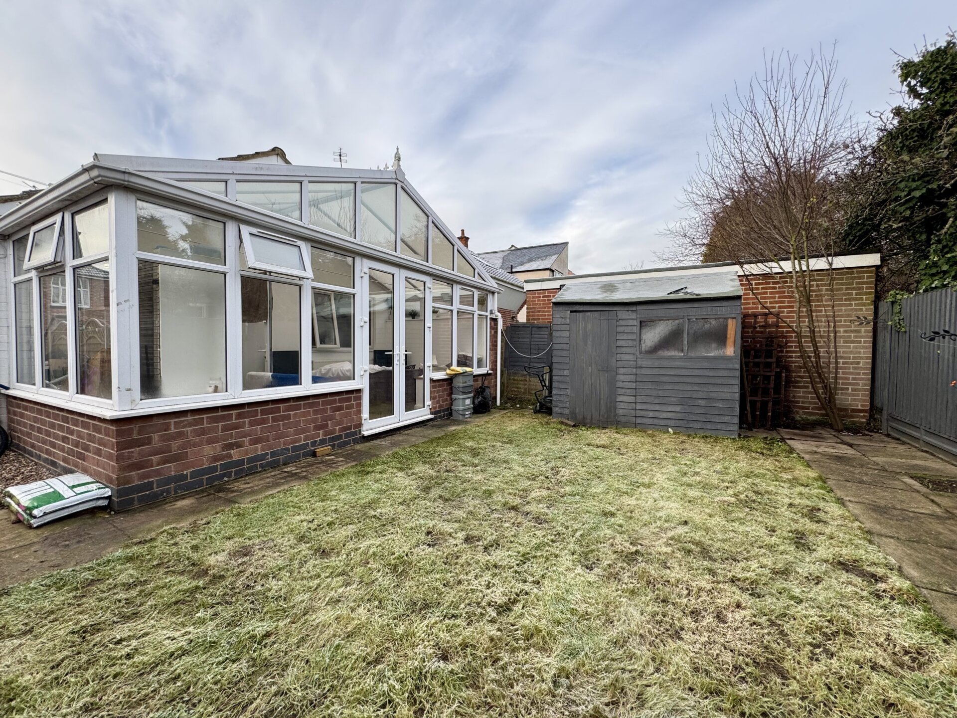 The rear garden has a paved patio and lawn along with fenced boundaries and secure gated side access.
