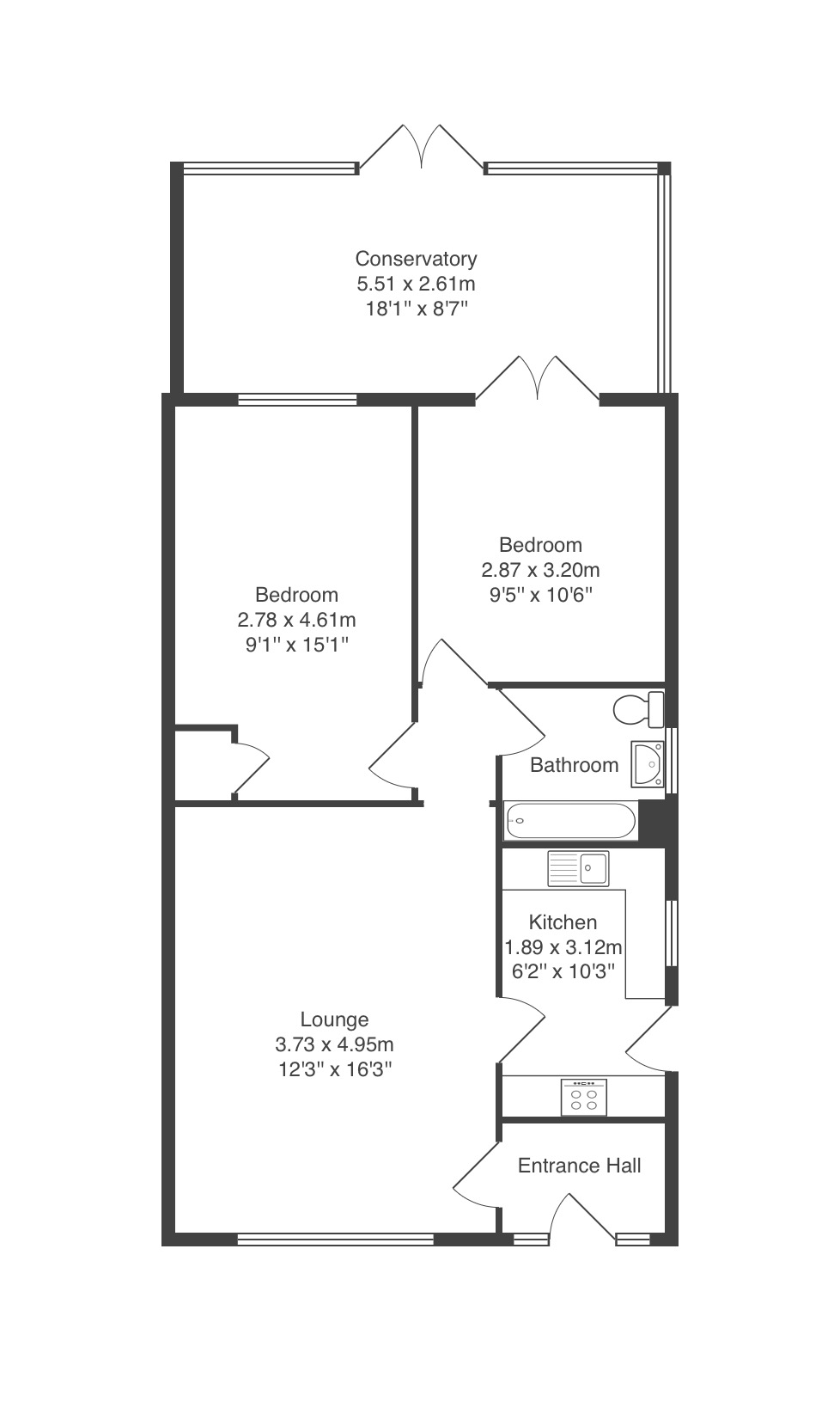 The bungalow features two double bedrooms, both thoughtfully designed to offer ample space for furnishings and storage. The bathroom has a white three piece suite and finished with floor and wall tiling.