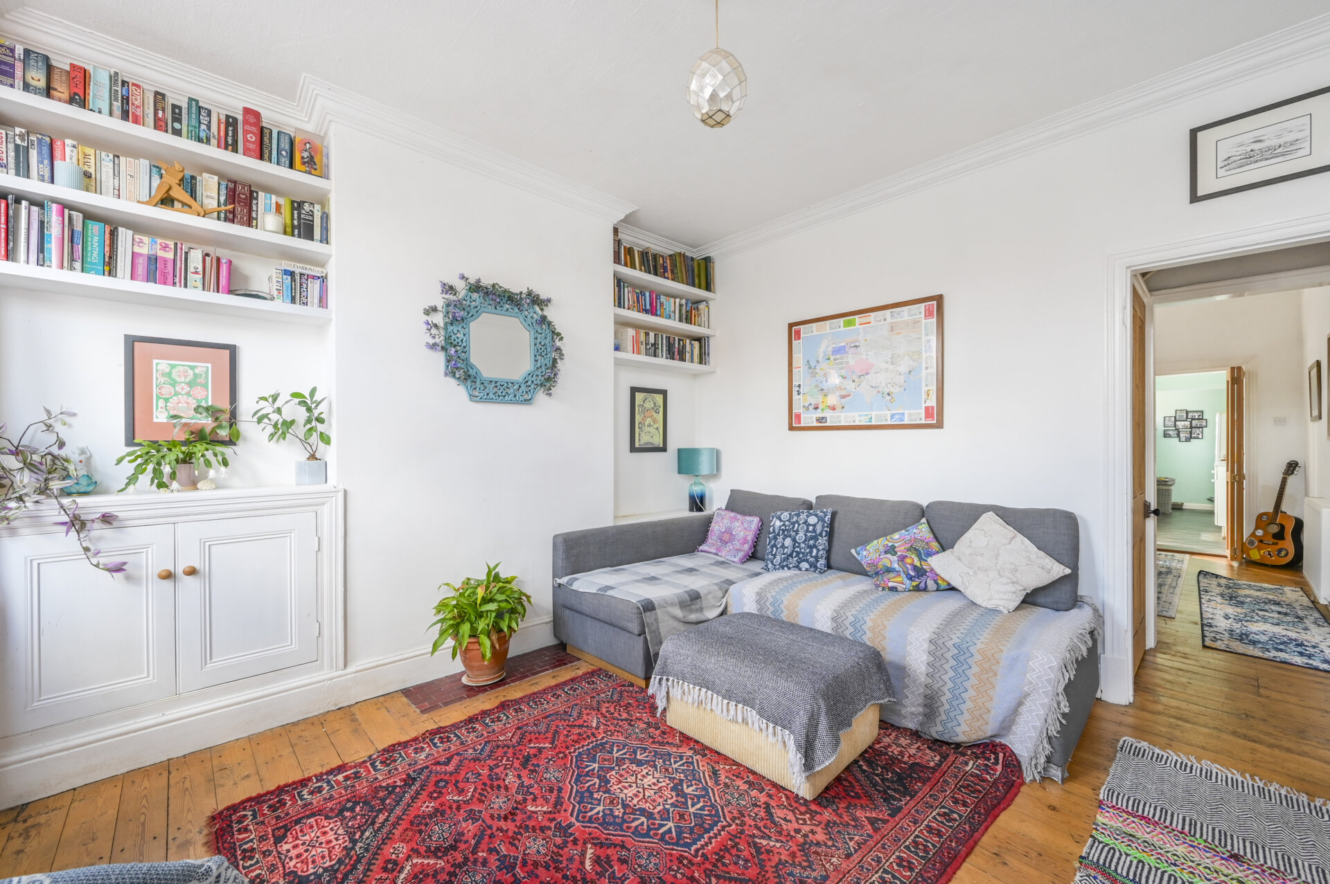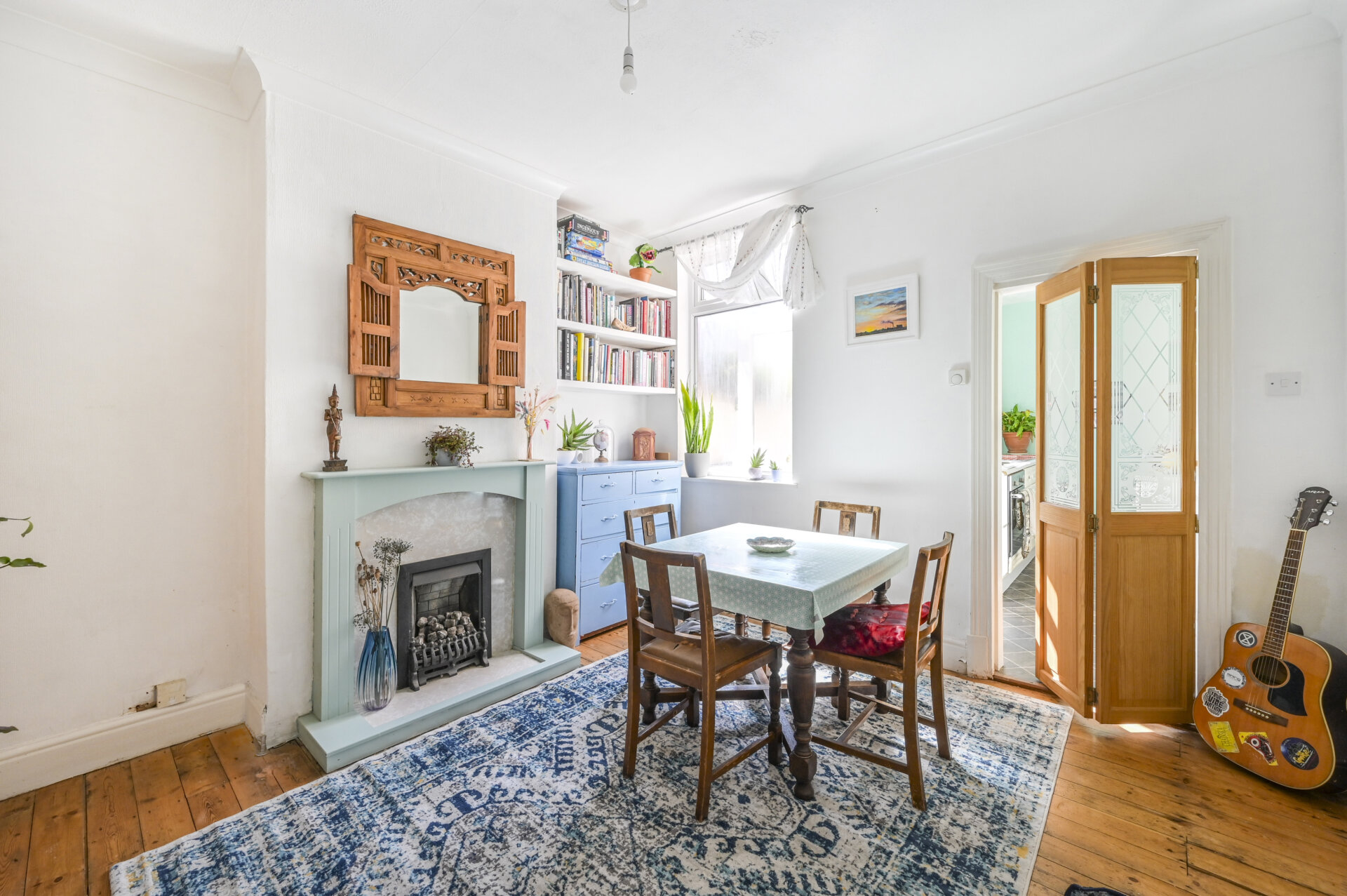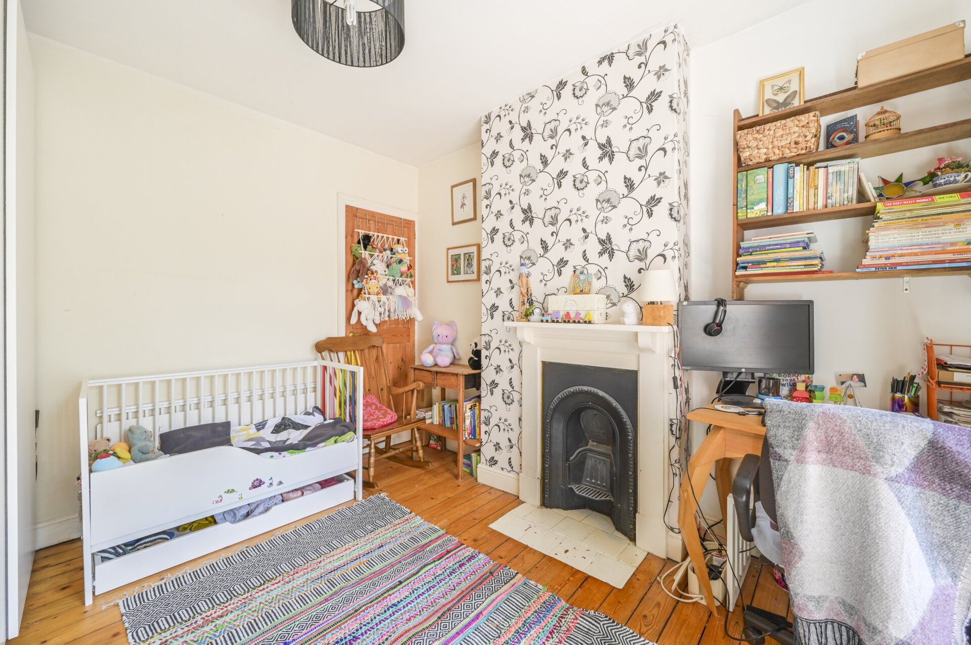 Upstairs, the first floor continues to impress with two generous double bedrooms. The master bedroom, located at the front of the house, is a peaceful retreat, offering plenty of space for a comfortable sleeping area. The second bedroom is spacious and can serve as a child’s room room, home office, or guest room, depending on your needs. Again, the feature fireplace giving it that extra edge.