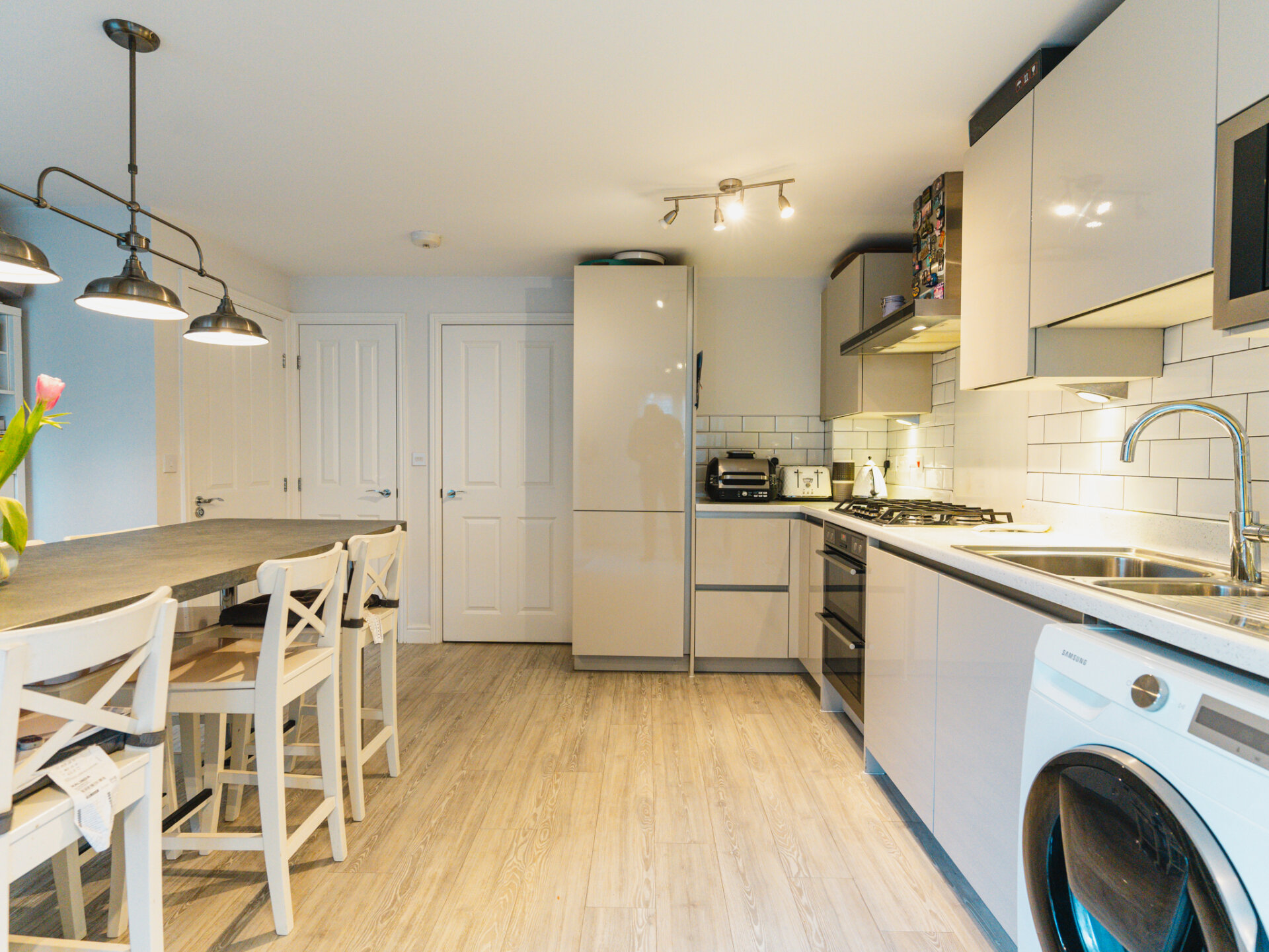 One of the standout features and social hubs of this delightful home is its magnificent open-plan kitchen, boasting Amtico flooring throughout. It's designed for modern family living, providing a space where you, your loved ones, and your friends can gather for catch-ups and get-togethers in a relaxed, informal atmosphere.