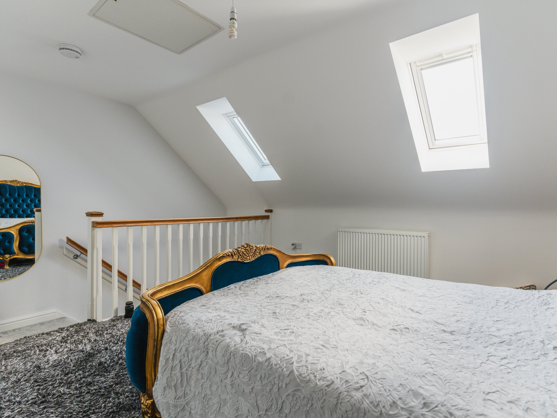 On the second floor, you will find the master bedroom and master ensuite. This could also be viewed as a sanctuary in its own right. Your own private hideaway. Spacious, plenty of fitted storage, vaulted ceilings, skylights and the balustrade to the stairs all combine to create the feel of an idyllic boutique-style hotel room. The en suite shower room, rather like the bathroom has a feel of luxury to it and comprises a shower, sink and WC.