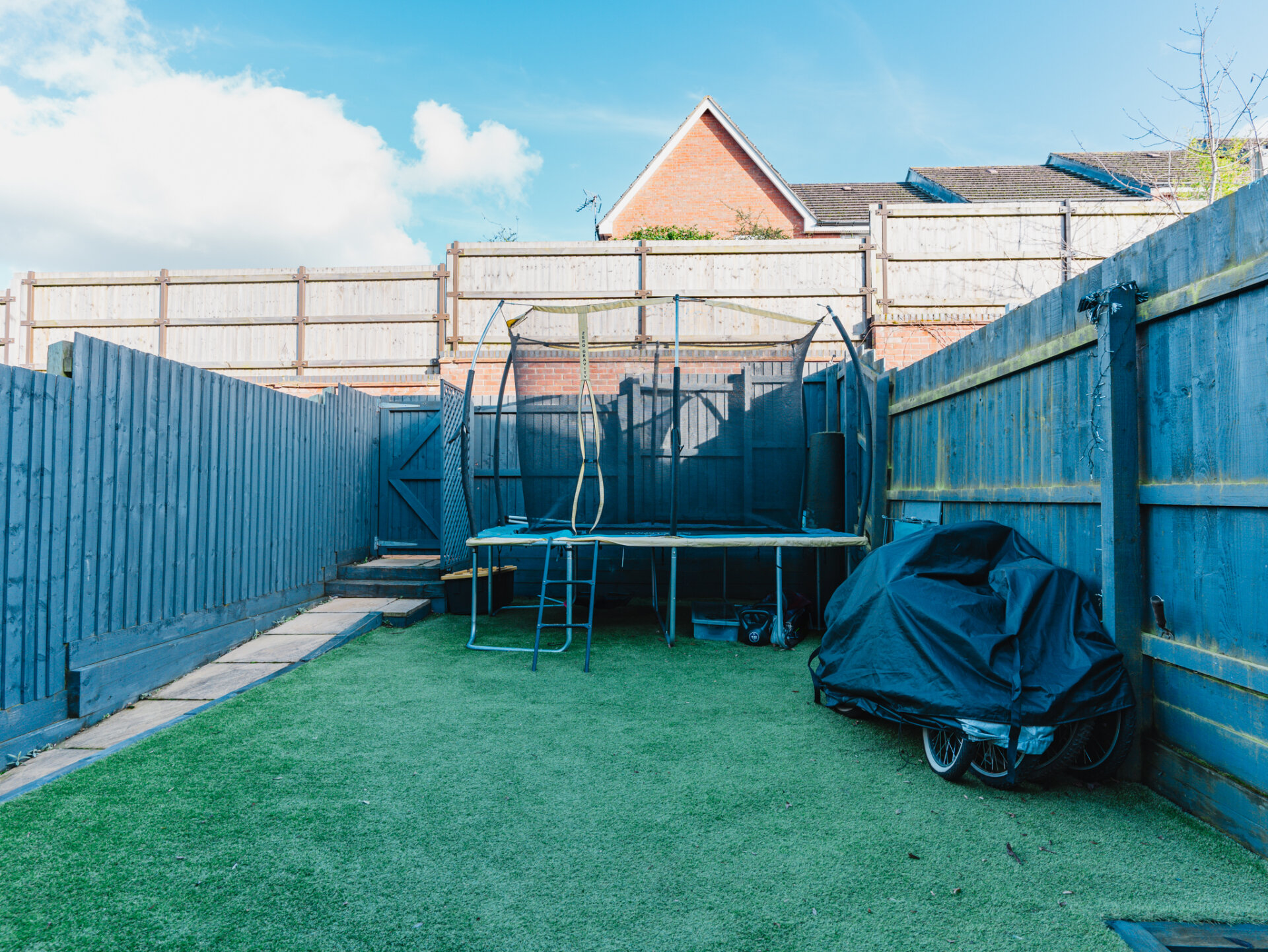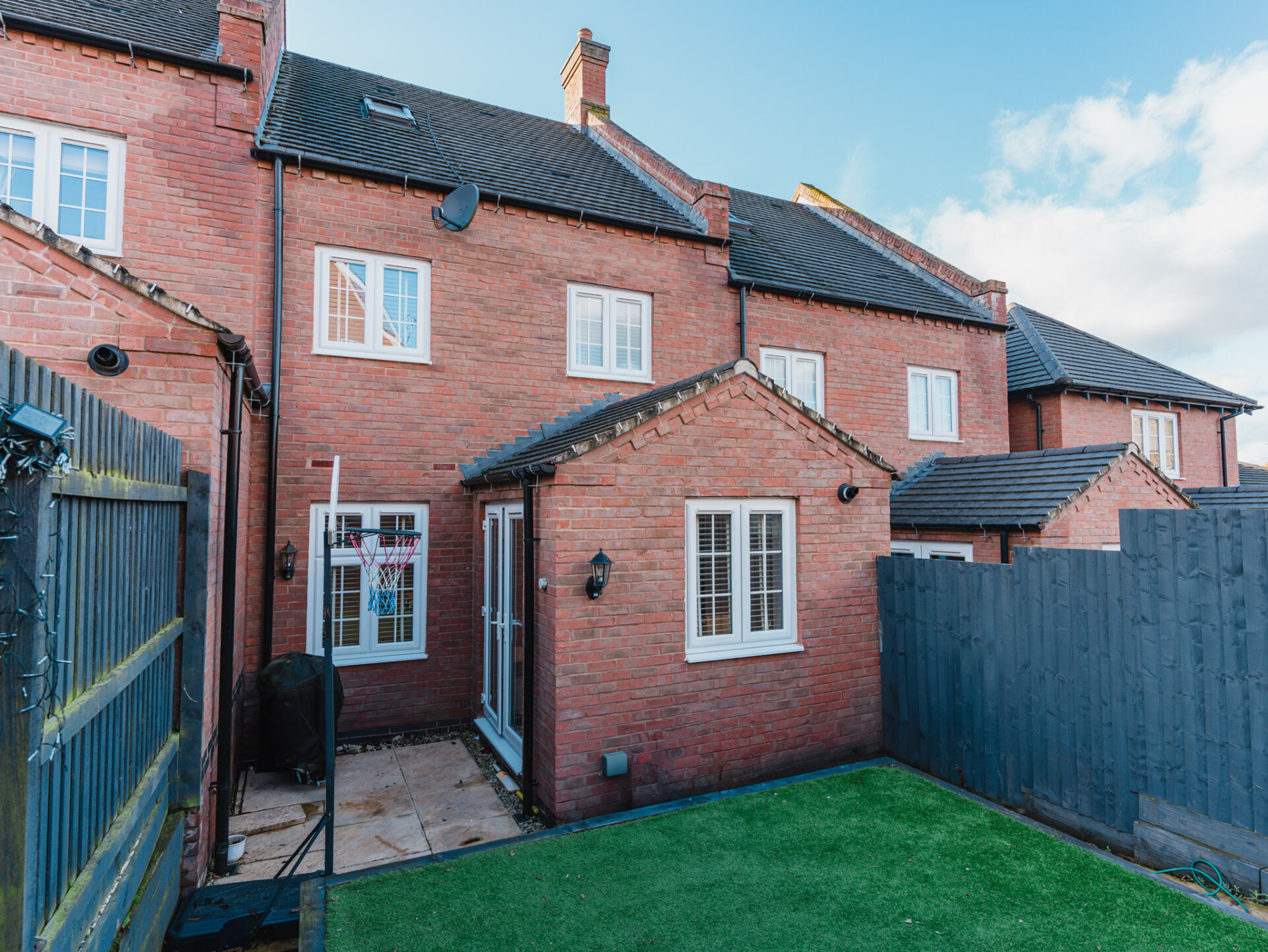 Exiting through the French doors of the kitchen, you'll step onto the patio and into a recently landscaped rear garden. Enjoying a high level of privacy and low maintenance, thanks to its tall fences and level artificial lawn, it's the perfect spot to quietly enjoy a book in the sunshine or to host alfresco drinks.