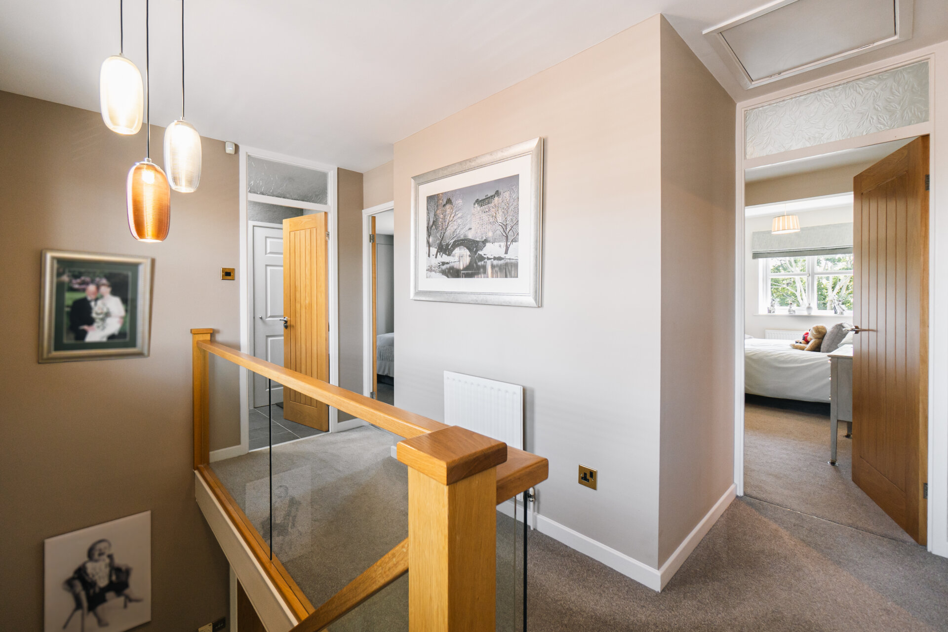 Upstairs, four well-proportioned double bedrooms are arranged around a central landing. The principal bedroom features a gorgeous and recently fitted en suite bathroom, while a modern family bathroom serves the remaining rooms.