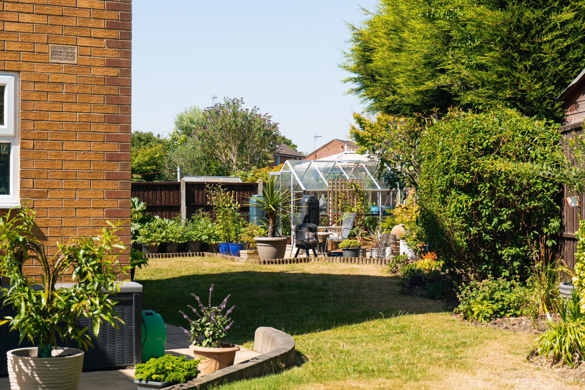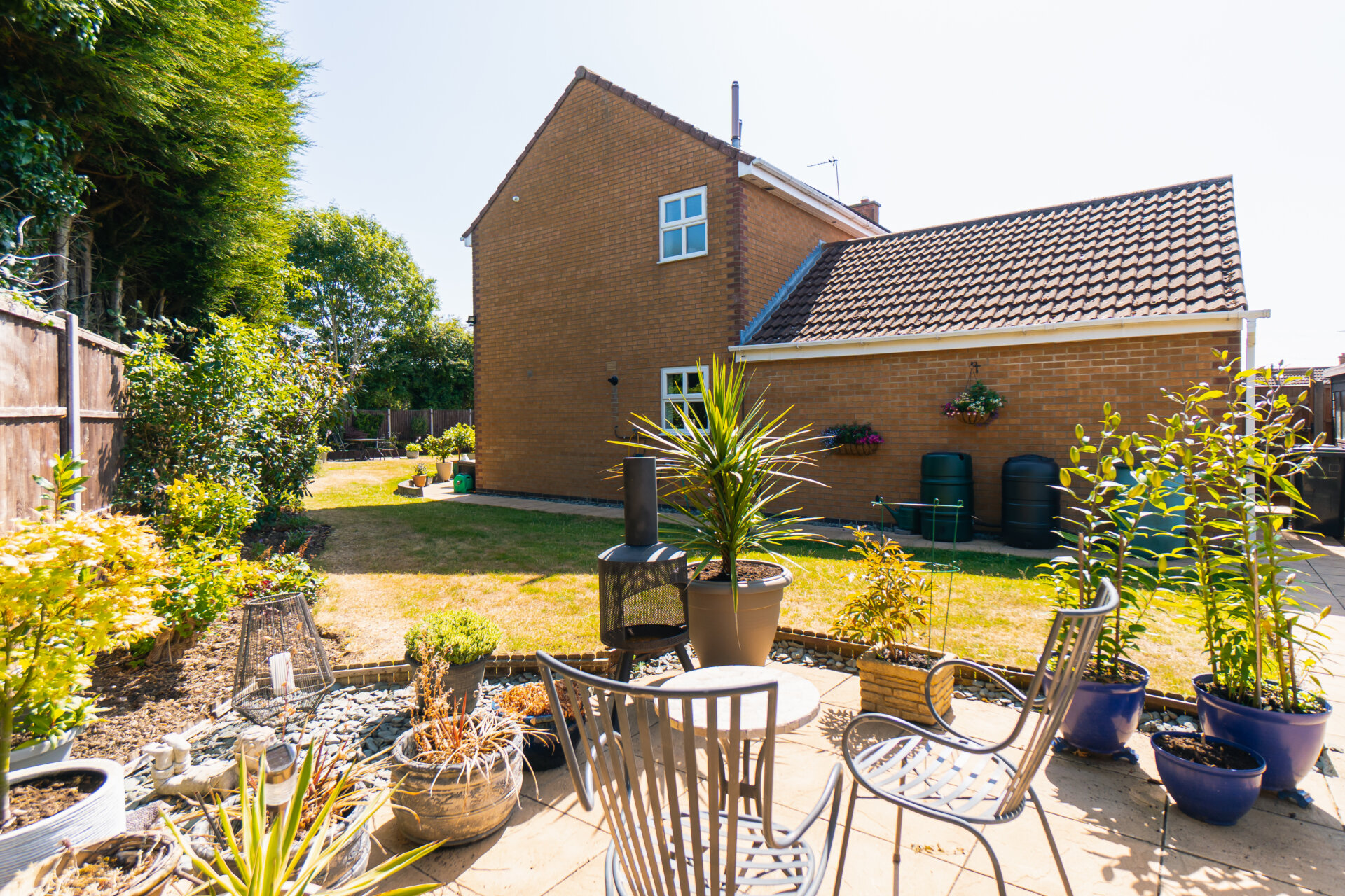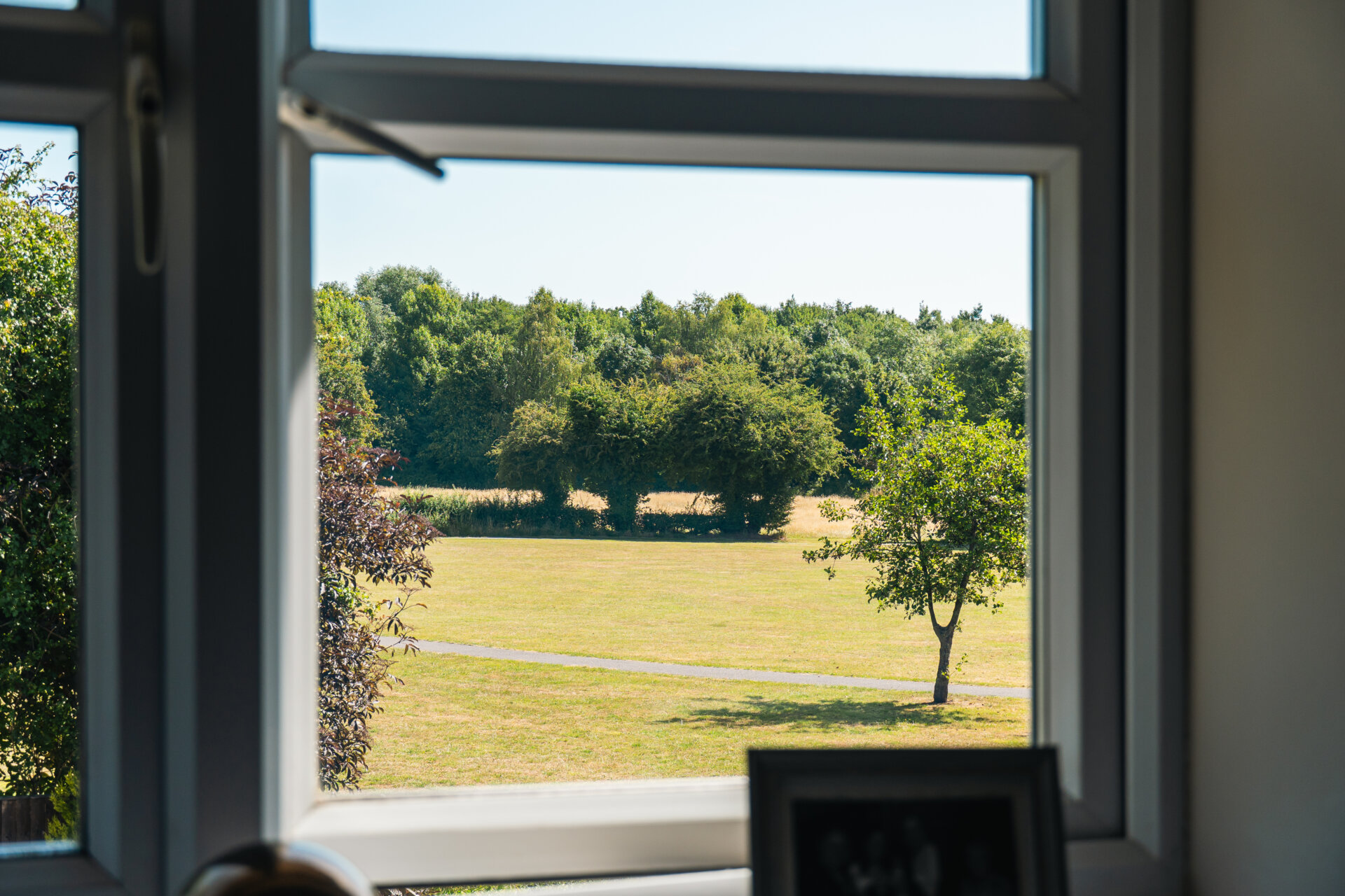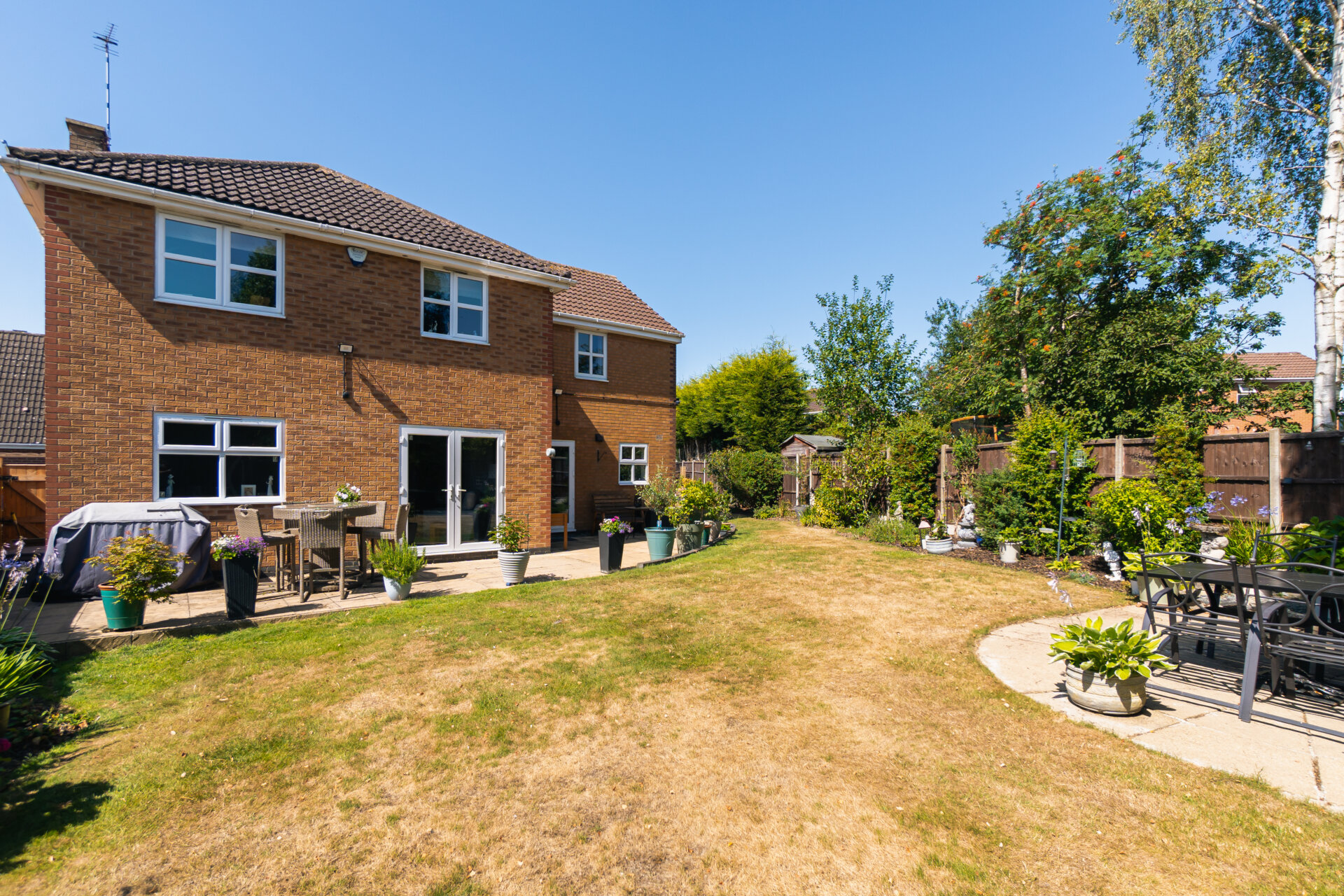 Externally, the house is wrapped by private, landscaped gardens. The rear garden offers a blend of paved terraces and lawn, ideal for al fresco dining or quiet retreat, with long, open views across Ferndale Park providing a rare sense of space and seclusion.