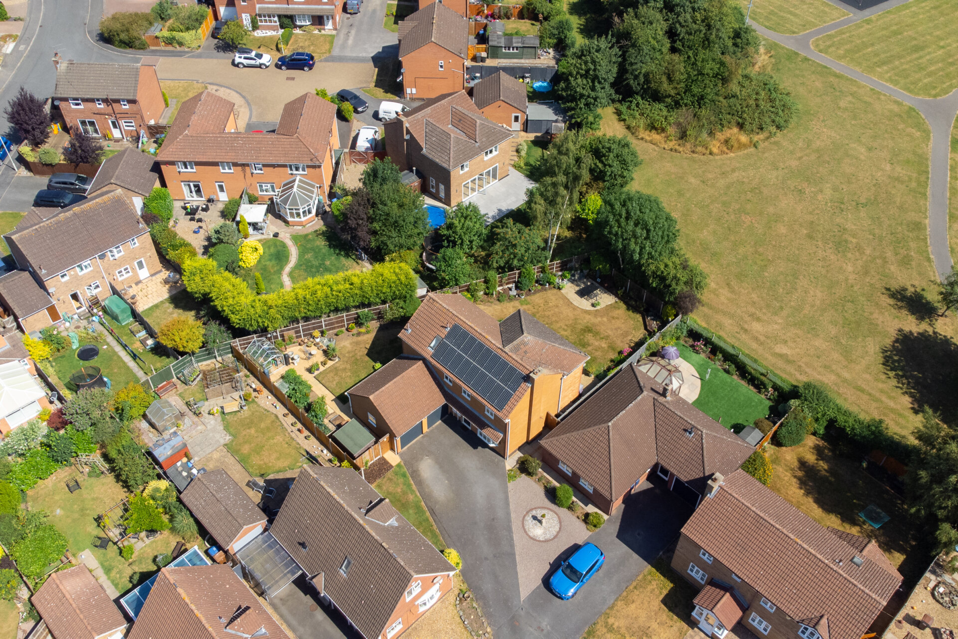 Sustainability has also been considered. A solar photovoltaic system, installed under the Government’s Feed-in Tariff scheme, supports energy efficiency, offering the homeowner both reduced utility costs and a contribution to the national grid. The panels are monitored remotely and operate year-round.