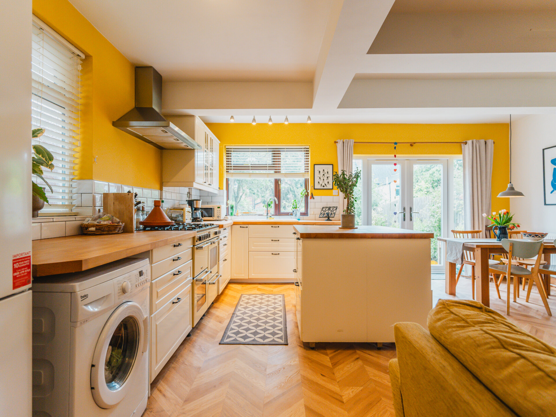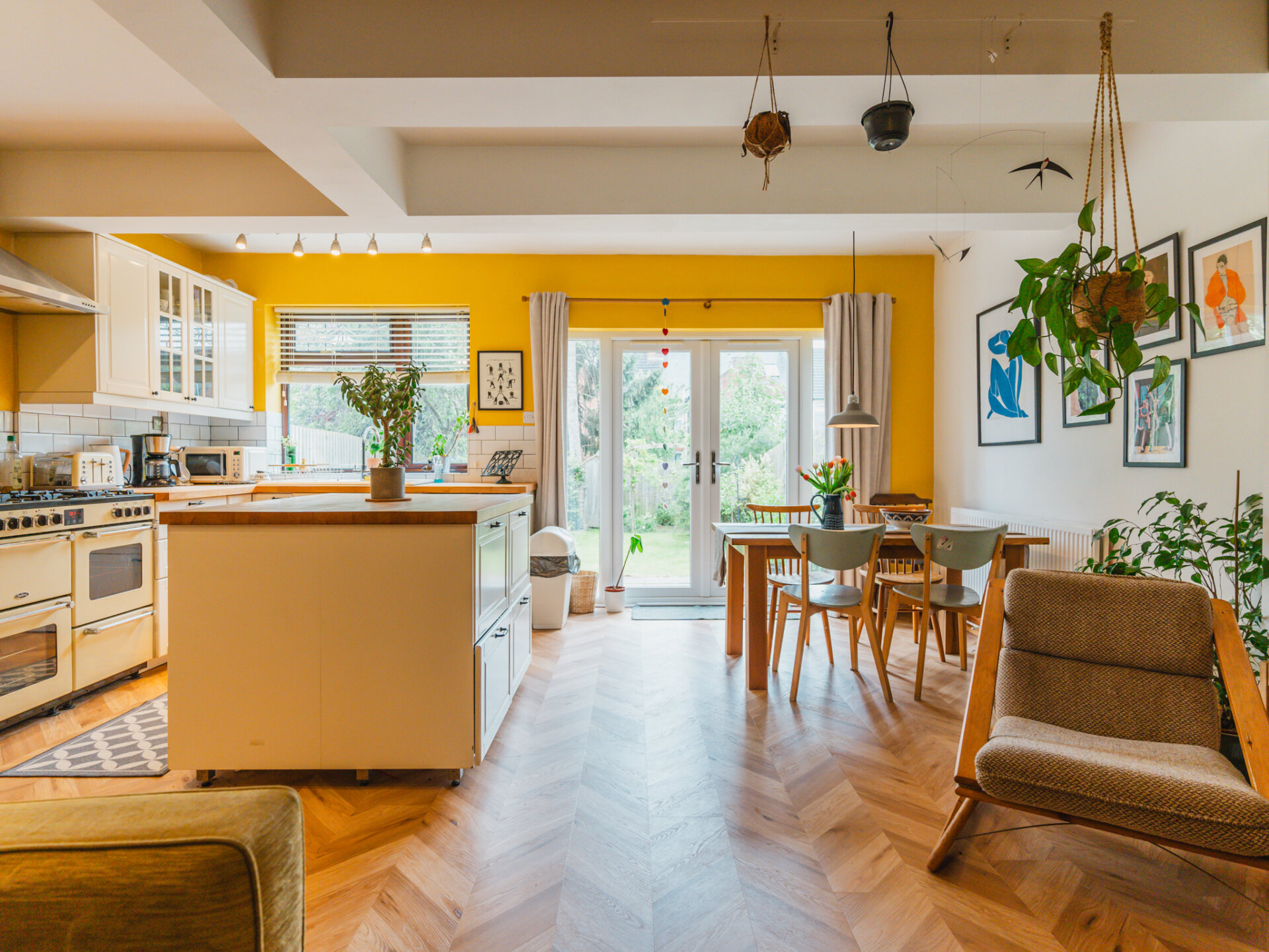 With raised shrubbery and steps leading down to the front of the property, entry is through a deceptively spacious, bright and airy entrance hall with stylish chequered-board ceramic tiles, providing dual access to both the front reception room and a spectacular open-plan breakfast kitchen. A well appointed focal reception room is positioned to the front of the plan, finished in a dusty-pink colour palette and pairs with a wide double-glazed window allowing an influx of natural light into the space. To the rear of the property and remodelled with incredible attention to detail, a spectacular open plan living/dining breakfast kitchen is finished in a mustard yellow. A large Rangemaster stove proves as an excellent focal point of the room with a wide island unit that is positioned to the centre, with an extensive range of eye and wall base units and sufficient space for all necessary appliances. A neat addition of a multi-fuel burner fireplace pairs with an exposed brick-surround and newly fitted LVT laminate flooring. Double-glazed French doors provide convenient access and pleasant views onto a recently upgraded, beautifully landscaped and mature South-facing garden. To the first floor, three really well proportioned bedrooms and a stylishly appointed three-piece family bathroom. Each room has been tastefully decorated and is presented in excellent condition throughout.
