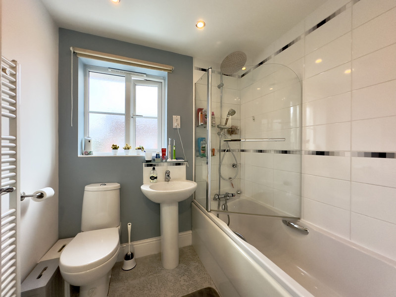 On the first floor are three bedrooms, two of which are good size doubles along with a single room. The family bathroom is fitted with a white three piece suite finished with complementary tiling.