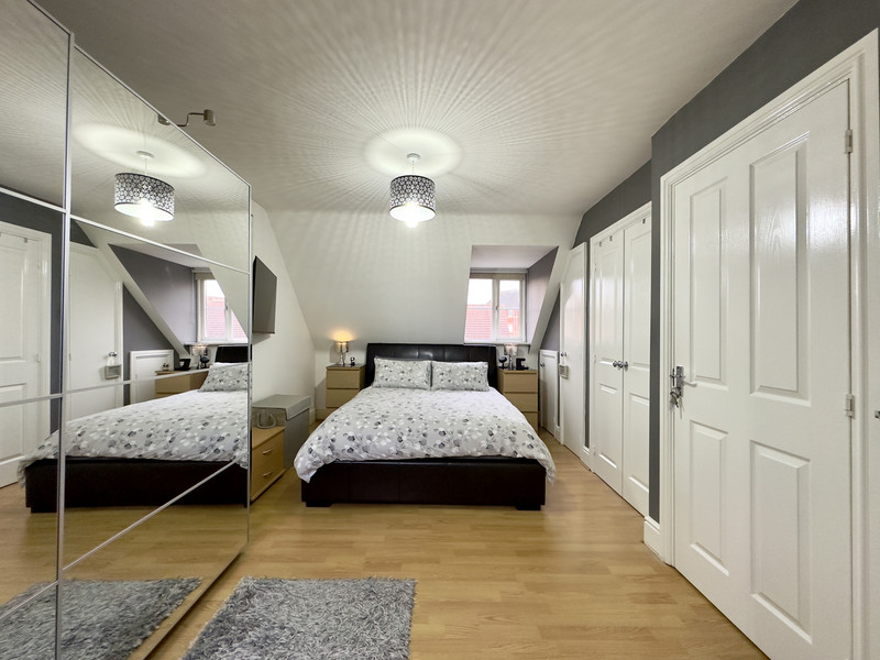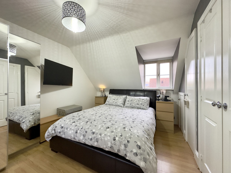 On the second floor is the master bedroom, generous in size and with a good amount of built in storage, including a double wardrobe. There is an en-suite shower room, complete with a three piece suite and having ample space for a vanity unit.