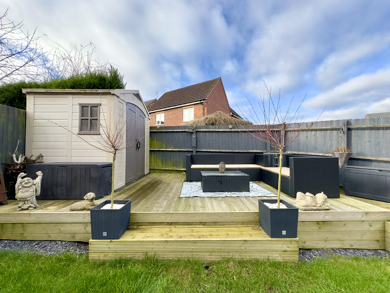 Outside the property is a driveway providing off road parking to the front. To the rear of the house is a well maintained garden with paved patio and lawn. Towards the rear of the garden is an attractive raised decked patio, the perfect space for outside dining during those summer months. The garden is secured with fenced boundaries.