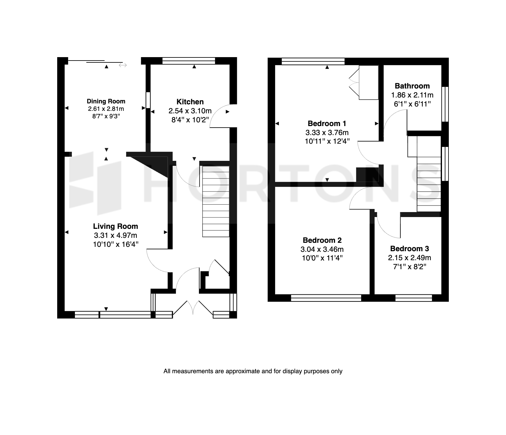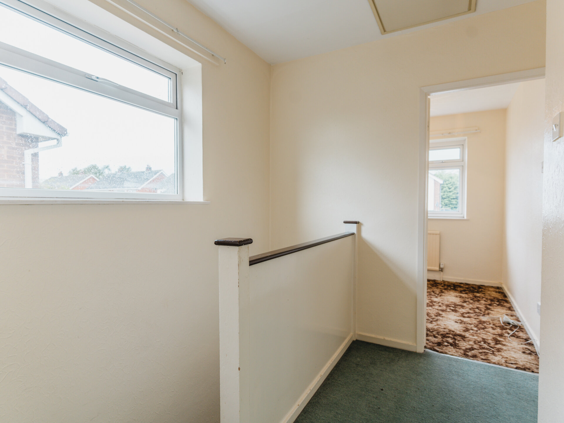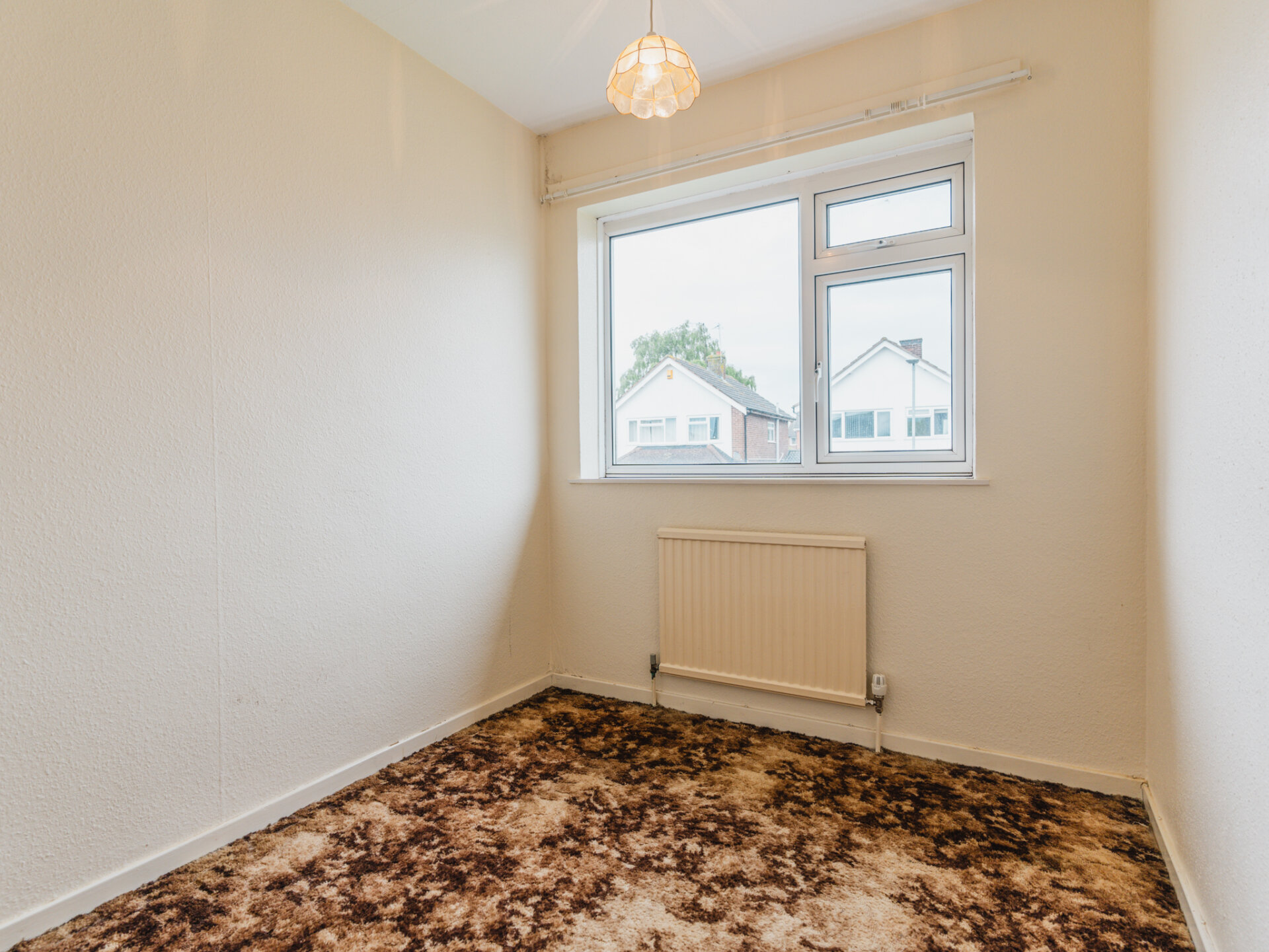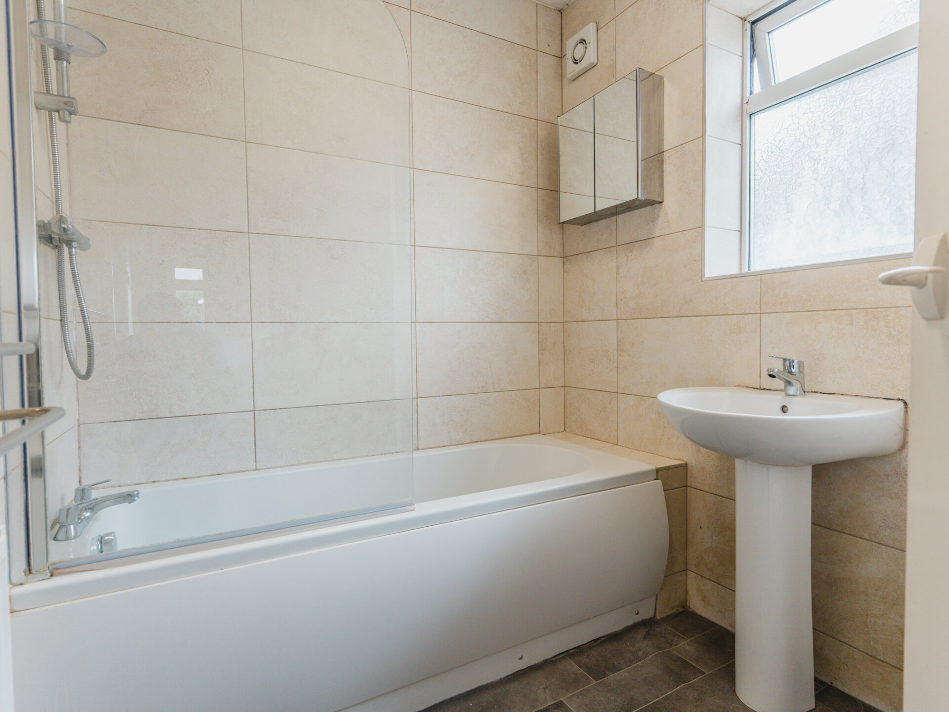 Upon entering, the spacious entrance hall provides dual access to both the living room and the breakfast kitchen. The front reception room is complemented by a central brick-surround fireplace and a large double-glazed window to the front aspect. An open archway leads to a separate, useful space with double-glazed sliding patio doors offering pleasant views of the rear garden. At the rear of the property, the well-appointed fitted kitchen, which does require modernisation, offers ample eye-level base units and space for necessary appliances. The kitchen also features uPVC doors to the side aspect, providing access to the rear garden. A wide entrance hall leads to the first-floor landing, which opens to three bedrooms and a refurbished three-piece family bathroom. The loft space is both boarded and insulated, and with the relevant planning permission, it could be converted to extend the existing property in the form of a loft conversion.