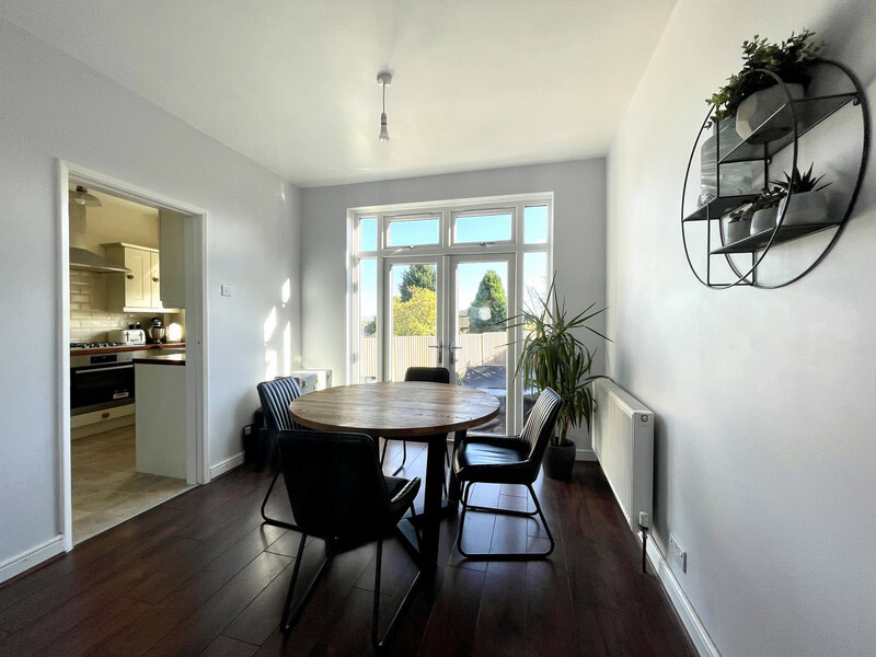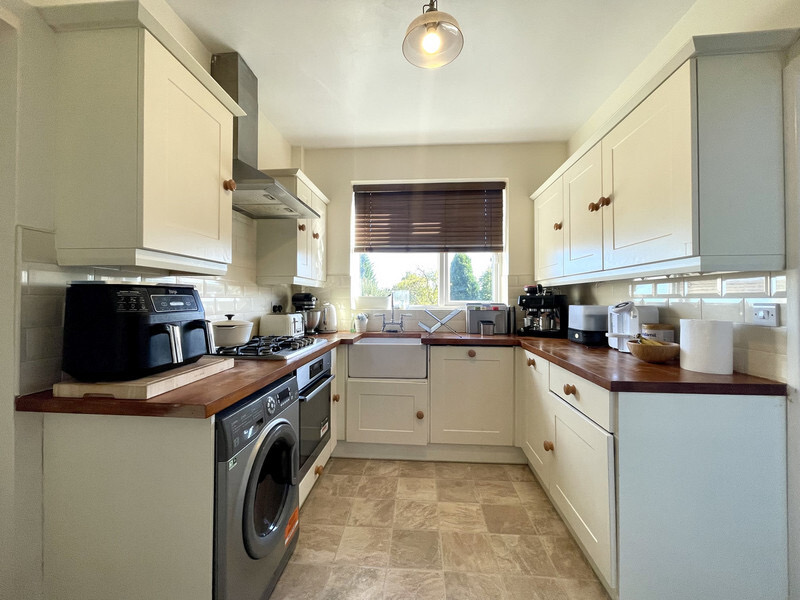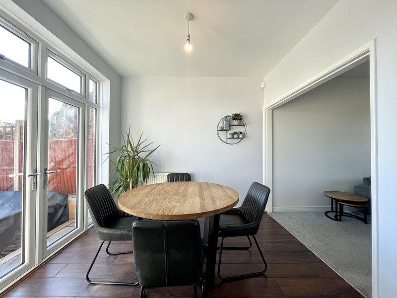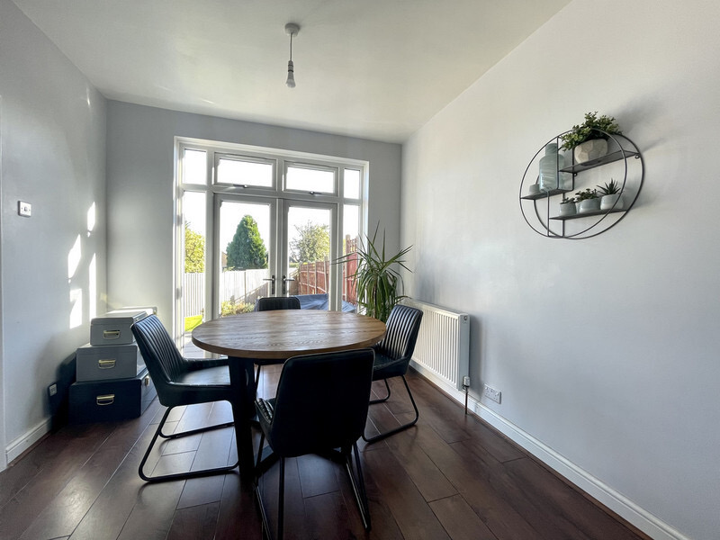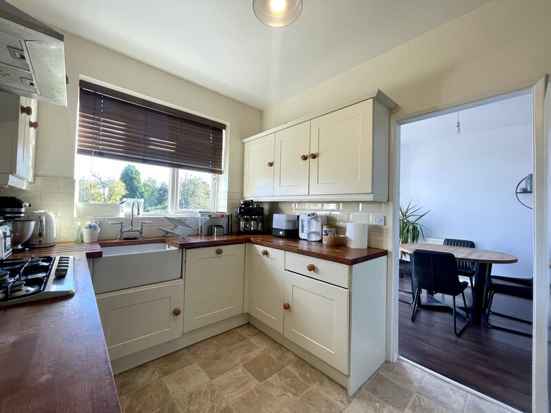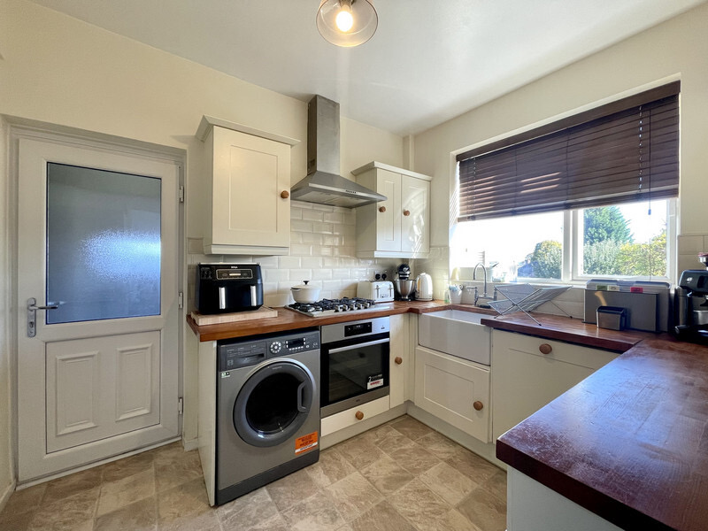 In brief the accommodation comprises porch, entrance hall, generous size lounge, dining room with French doors opening to the rear garden and a stylish fitted kitchen. The kitchen has a range of wall, base and drawer units with a good amount of work surface over. There are space for appliances along with an integrated electric oven and gas hob with cooker hood over. The door to the side gives access into the extremely useful store room.