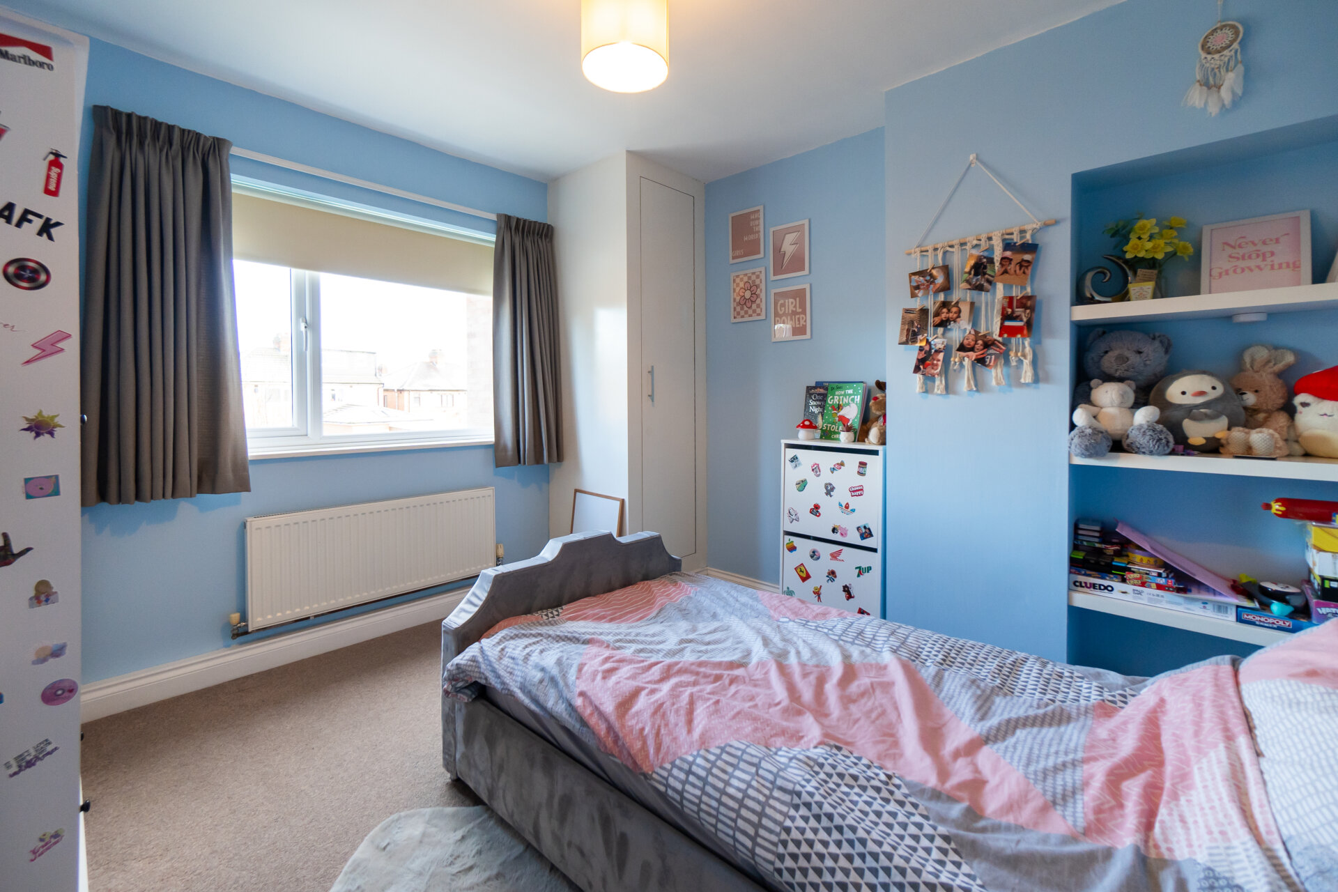 To the front of the home, the well-appointed lounge boasts a charming bay window that floods the room with natural light. Moving through, you’ll discover the heart of the home—a contemporary kitchen/diner that has been thoughtfully designed. The kitchen’s sleek fittings and ample counter space make meal preparation a pleasure, while the dining area offers an inviting setting for socialising and entertaining guests.