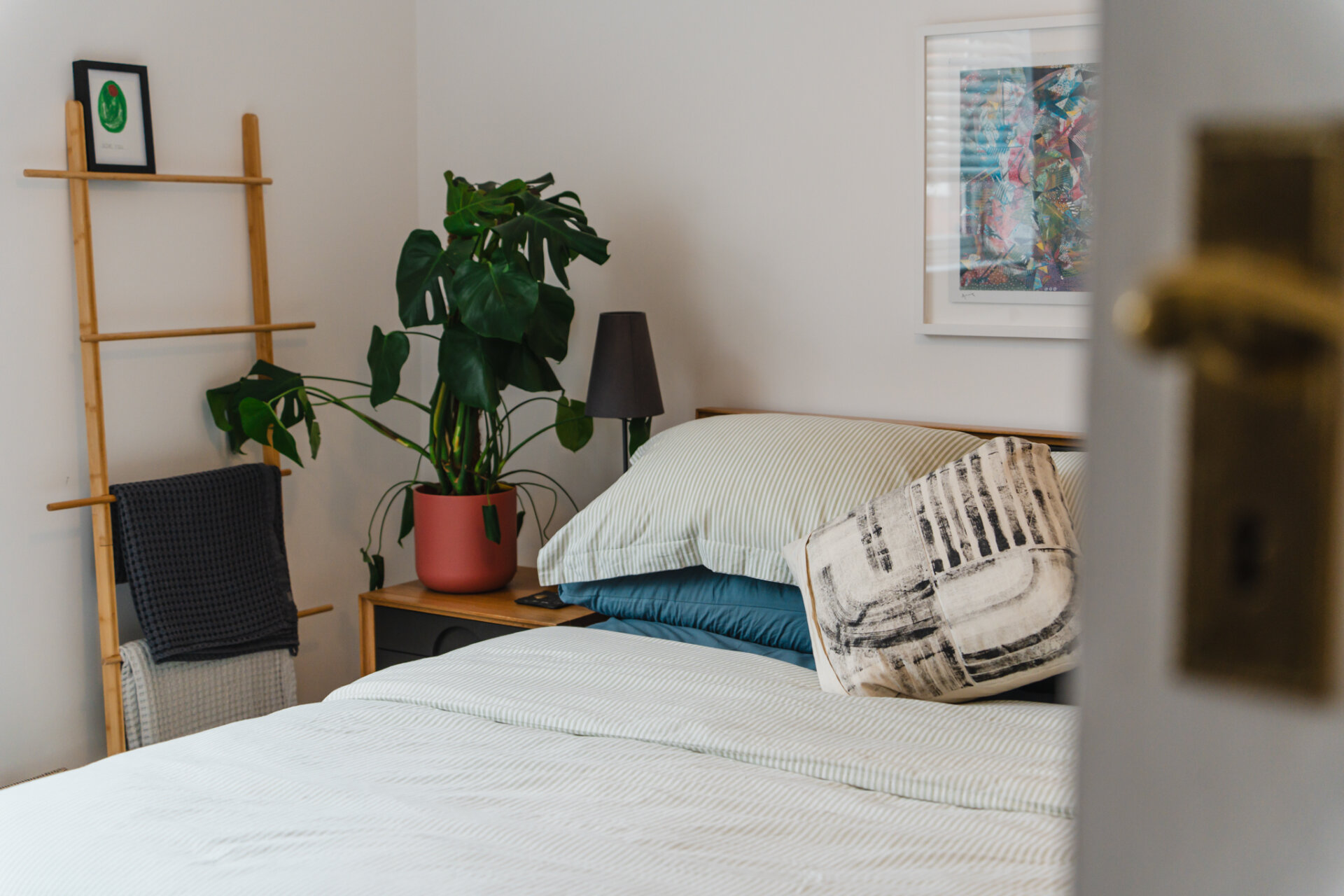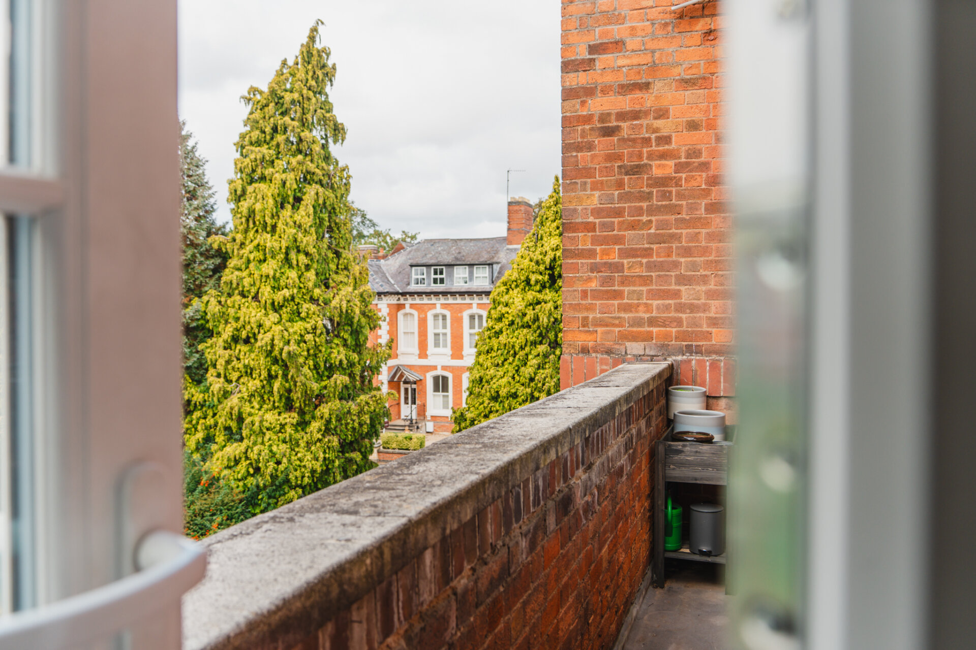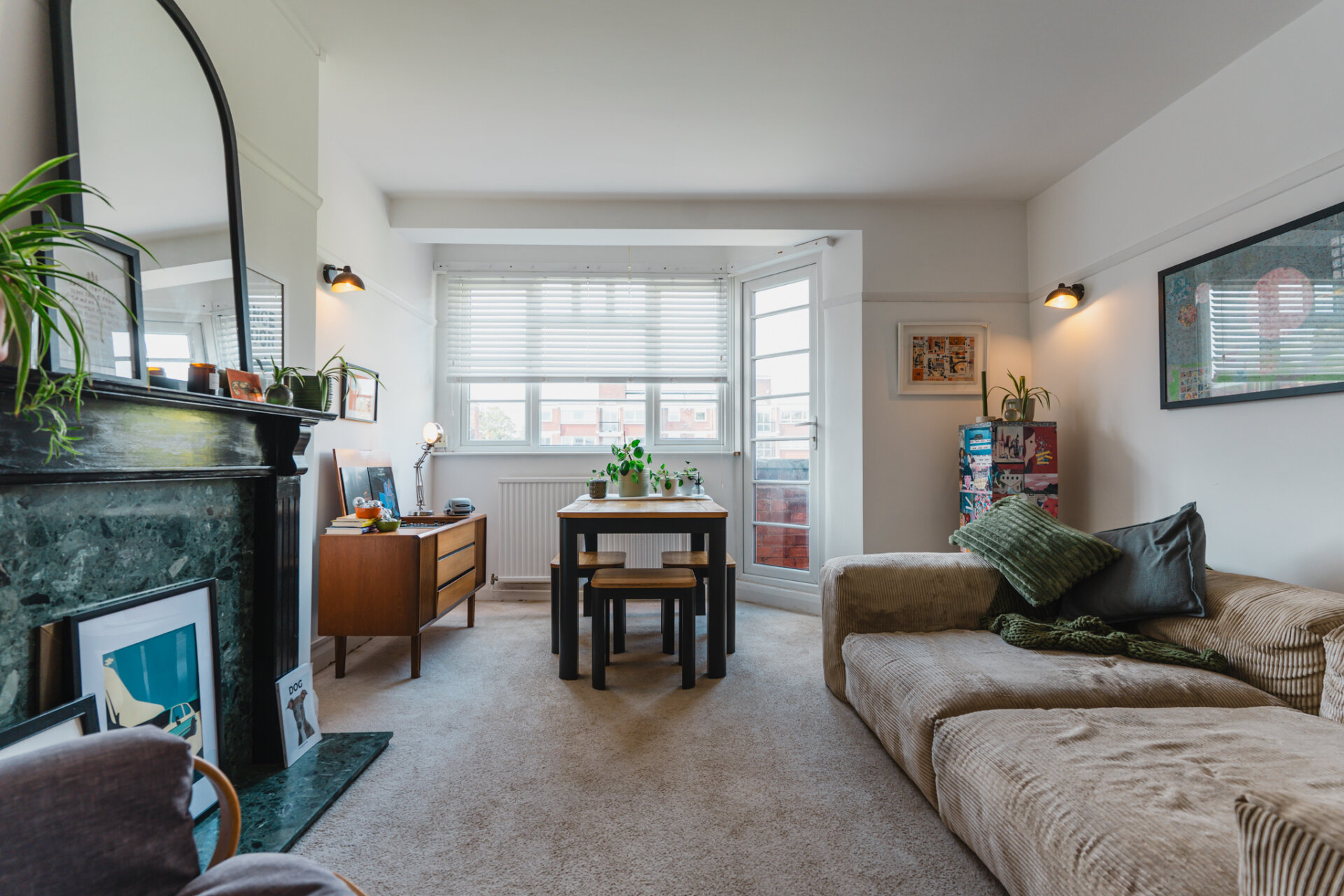Set on the second floor of the Grade II-listed Knighton Court, this spacious two-bedroom apartment lies in the heart of Stoneygate’s conservation area. A striking example of interwar architecture, the building is defined by its clean lines, geometric detailing and symmetrical proportions. The apartment marries these mid-century elements with tasteful modern updates, offering a rare blend of heritage and contemporary comfort.