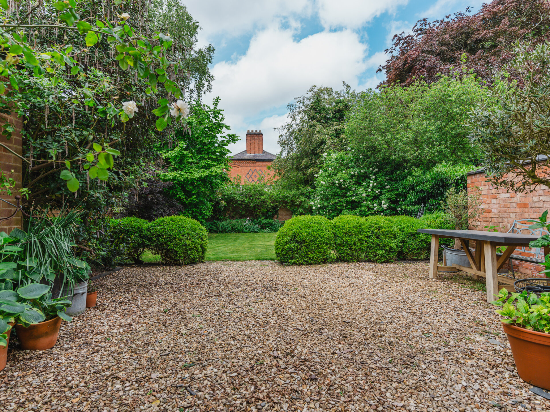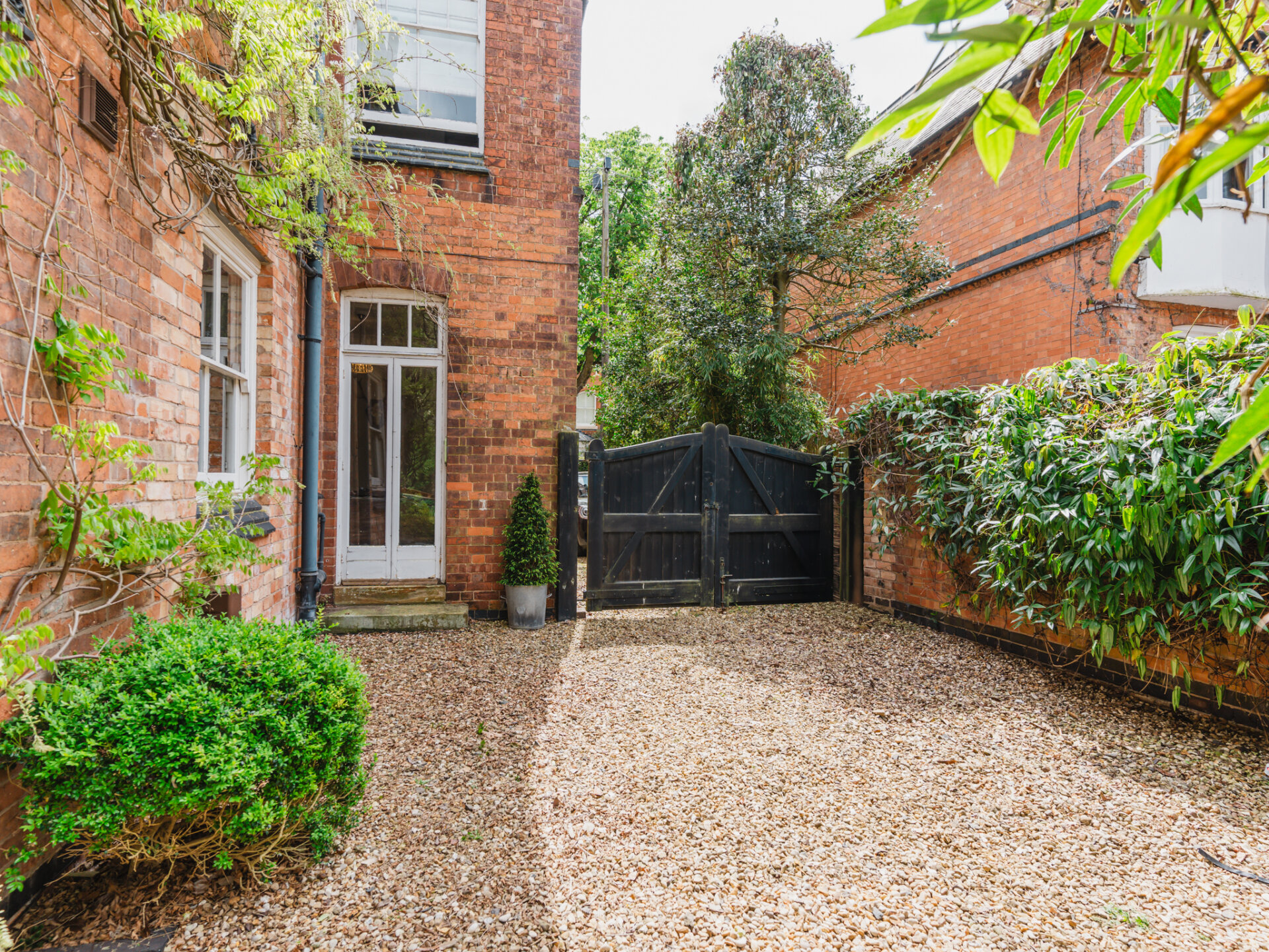 Outside, an incredibly private and mature North-facing garden extends from the kitchen and second reception room through French timber doors. Featuring a gravelled area and mainly laid-to-lawn greenery, the garden space is perfect for alfresco dining. Well-established with blooming Wisteria, Buxus plants and various fruit trees, the property offers immense privacy from nearby properties on both sides, with the added benefit of a deep driveway and a detached garage providing unusual off-road parking for several vehicles, a real rarity in this part of Stoneygate.