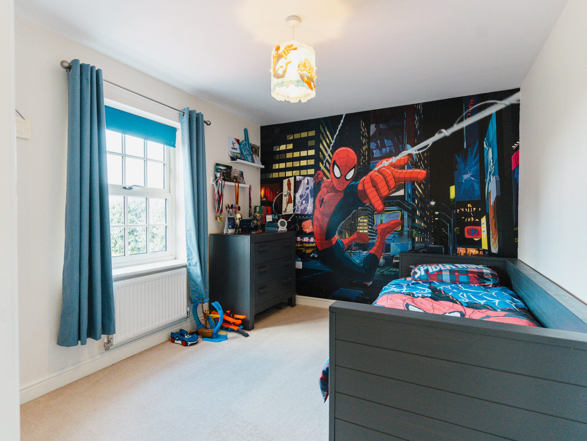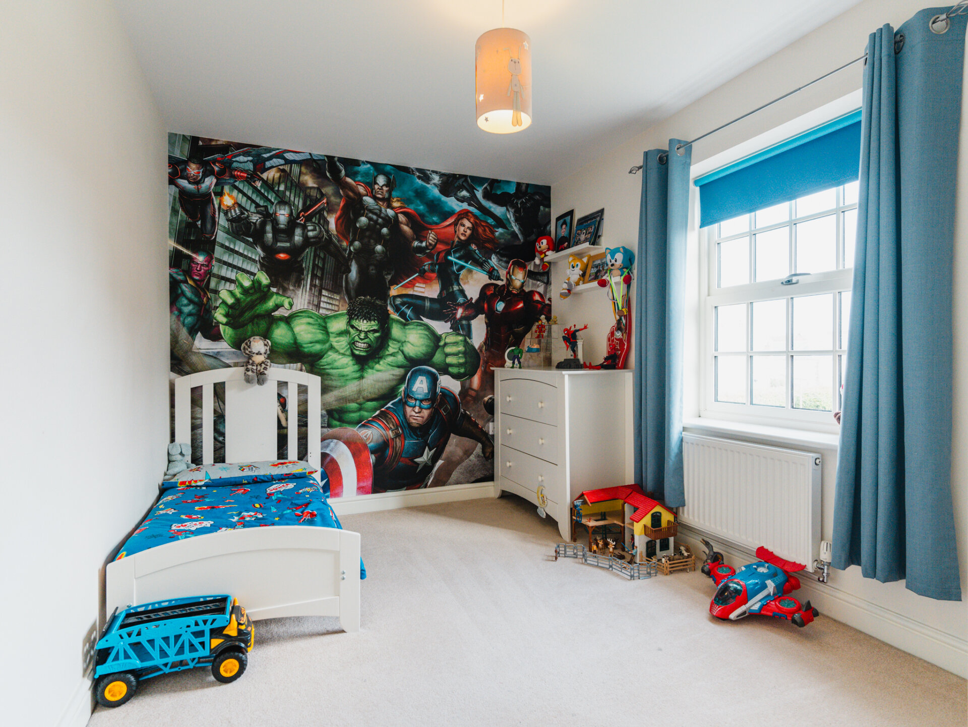 The final double bedroom awaits, offering comfort and convenience for residents and guests alike. Boasting a fitted wardrobe and a front-facing window with views of Scraptoft Hall, this room is sure to impress with its spacious layout and fun decor.