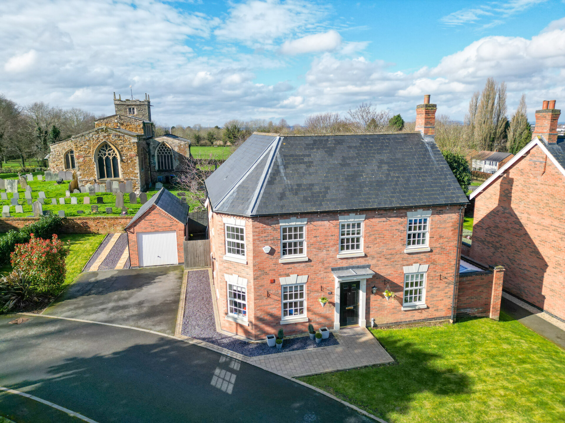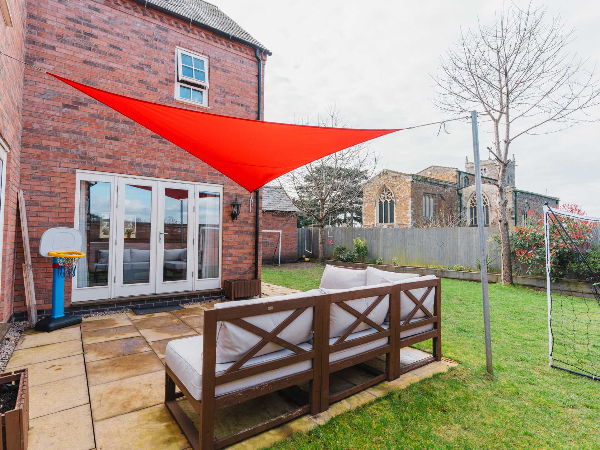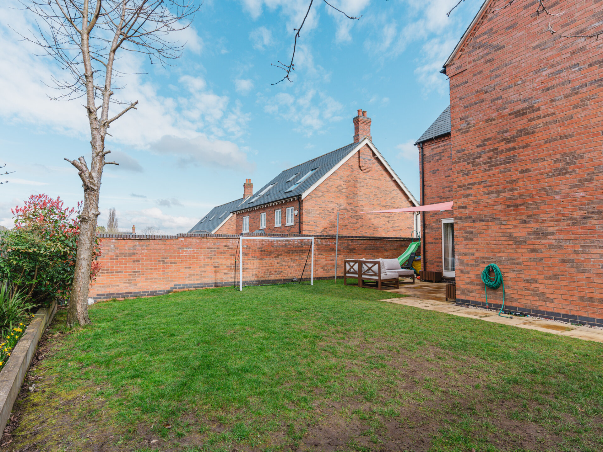 Step outside and discover the enchanting outdoor spaces surrounding this remarkable property. The front of the home boasts a generous lawned frontage bordered by easy-to-maintain slate borders, creating a welcoming first impression. A pathway leads to the front door, while a side-by-side driveway provides ample parking for three vehicles and leads to a detached single garage, offering additional storage space and convenience. To the rear, the garden offers a private retreat perfect for enjoying the summer months with family and friends. With its westerly aspect, the garden enjoys plenty of sunshine throughout the day, making it an ideal spot for outdoor entertaining and relaxation. A large lawn wraps around the property, accented by raised flower beds and an enclosed patio seating area positioned in front of the French doors leading from both the kitchen and living room, creating a seamless flow between indoor and outdoor living spaces.