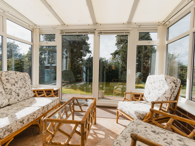 With immediate kerb appeal with a long driveway to accommodate several vehicles, entry is through a double-glazed entrance porch that opens to an entrance hallway. To the right hand side of the plan, a bright, airy and spacious front reception room. With two double glazed to the front aspect allowing natural light to flood the space on offer, a feature fireplace is positioned to the centre making an excellent focal point whilst an extension to the rear has curated a well appointed conservatory. To the centre of the plan, a fitted breakfast kitchen is equipped with sufficient base-level units and space for relevant appliances but does require refurbishment throughout. To the rear, a lean-to provides access to the well-maintained South-facing rear garden. To the left hand side of the plan, two double bedrooms equipped with fitted wardrobes provide sufficient space for relevant bedroom furniture whilst a three piece family bathroom has been altered into a wet-room. To the rear, an incredibly private, beautifully maintained and landscaped mainly laid-to-lawn South-facing rear garden boasts a vast array of established shrubbery, fruit trees and borders from the neighbouring properties with a separate patio area to the side. To the front, raised shrubbery provides immense privacy from neighbouring properties with a large driveway that could fit several vehicles and a detached single garage.