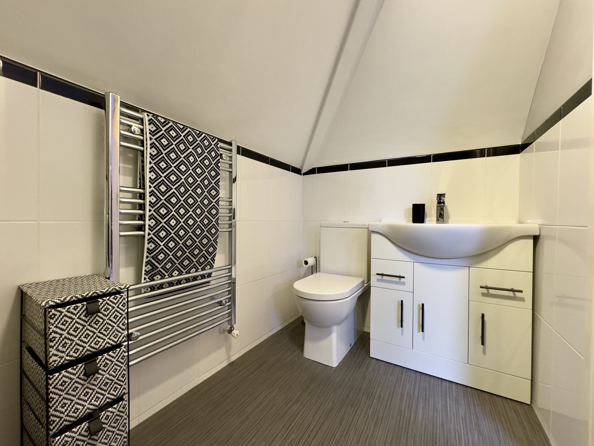 On the first floor is a further double bedroom, again having its own en-suite bathroom. There’s also a useful storage space on the first floor, ideal for growing families.