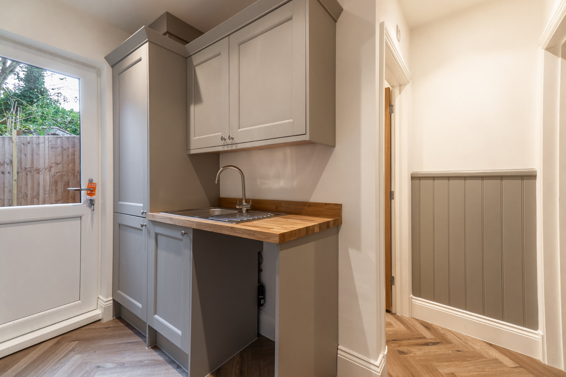 A separate utility room offers additional storage, a sink, and space for laundry appliances, with a rear door providing access to the garden. There’s also a guest WC and useful under-stairs storage.