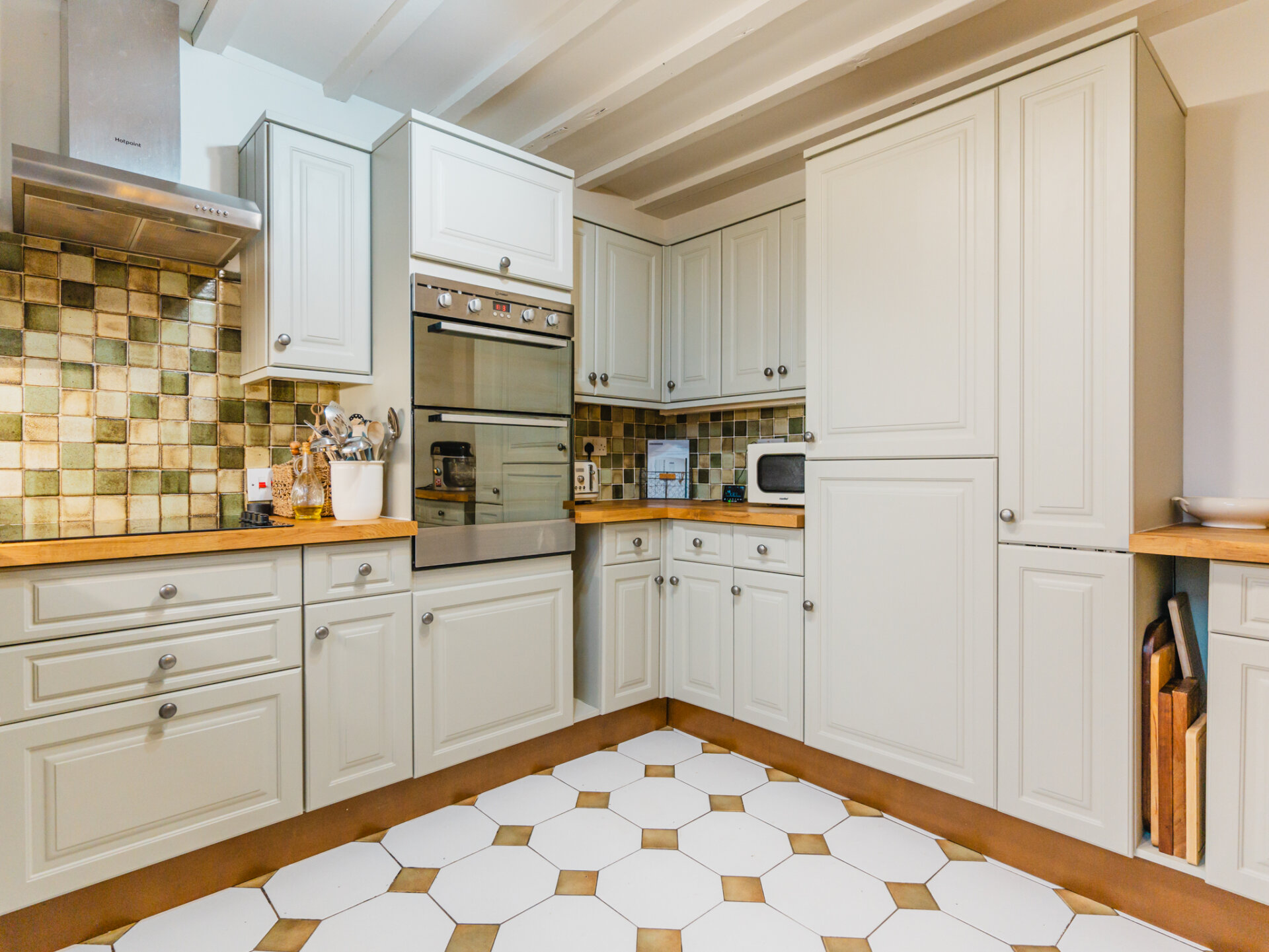Step into the warmth and character of this beautifully designed home. At its centre is the country-style kitchen, a true gem that exudes charm and practicality. Featuring elegant oak worktops, a beamed ceiling, and tiled floors, the kitchen effortlessly blends rustic aesthetics with modern functionality. Built-in appliances, including a double oven, induction hob, and integrated fridge and freezer, ensure that this timeless space caters to every modern convenience.