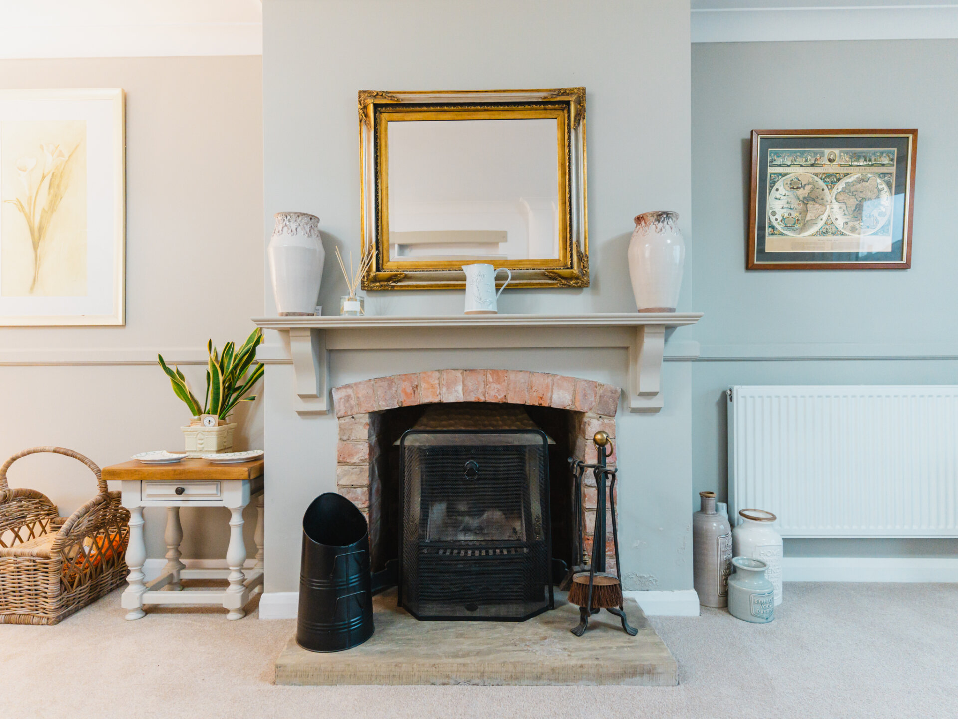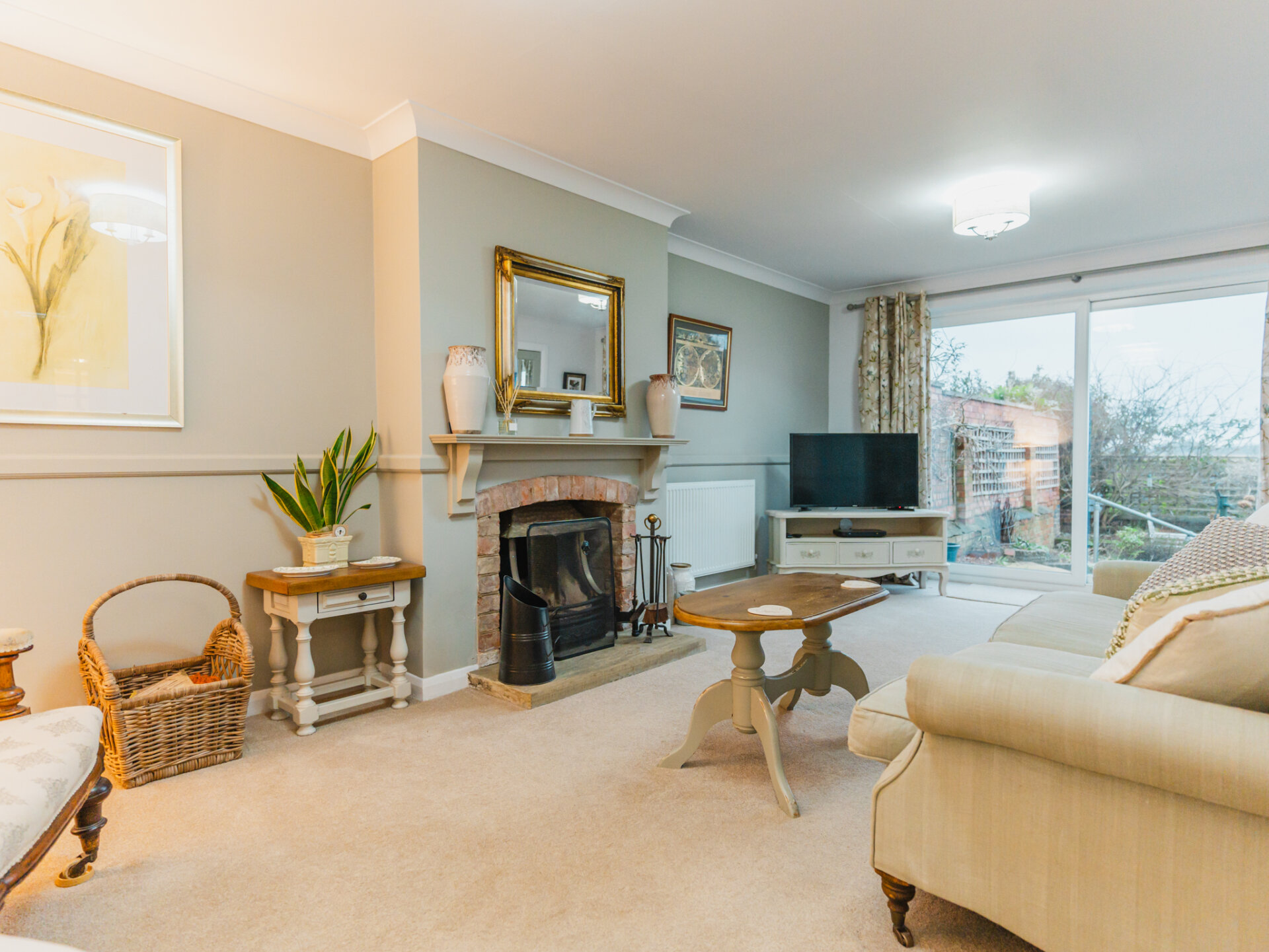 The dining room and lounge provide the perfect settings for family gatherings or quiet evenings in. Double doors connect the two spaces, while sliding glass doors open onto the rear garden, creating a seamless connection between indoor and outdoor living. The lounge, with its feature fireplace, adds an extra layer of cosiness, making it an ideal retreat on cooler evenings.