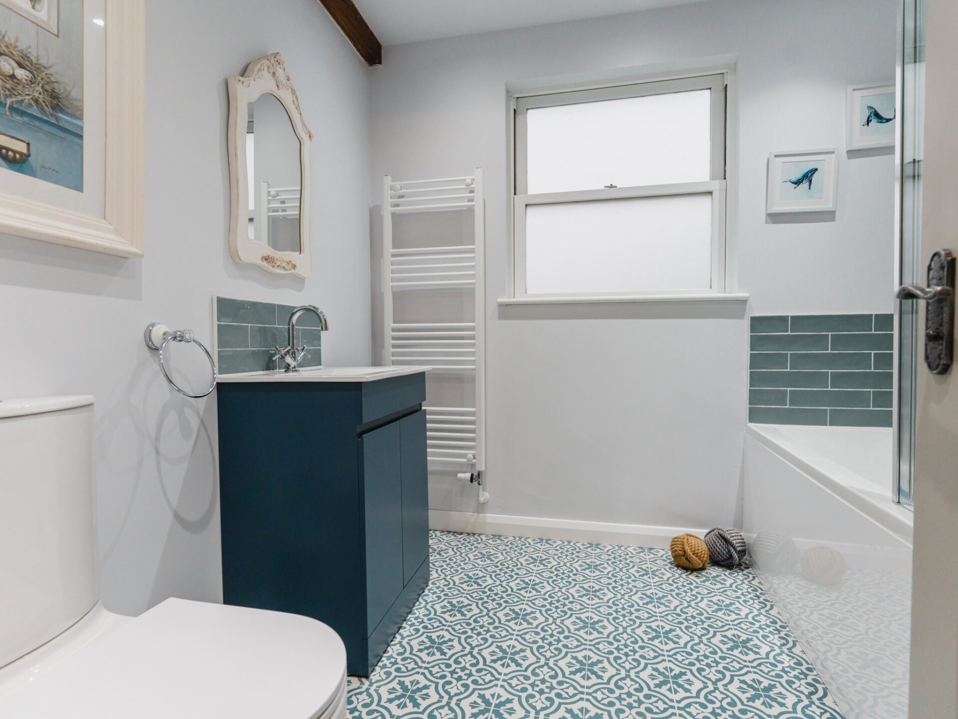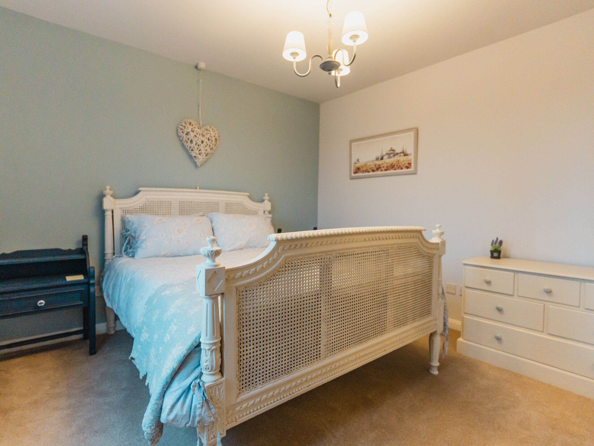 The remaining bedrooms, including one with a built-in wardrobe and loft access, are equally inviting, offering space for family, guests, or even a home office. A modern family bathroom, finished with elegant tiling and a shower-over-bath, completes this floor.