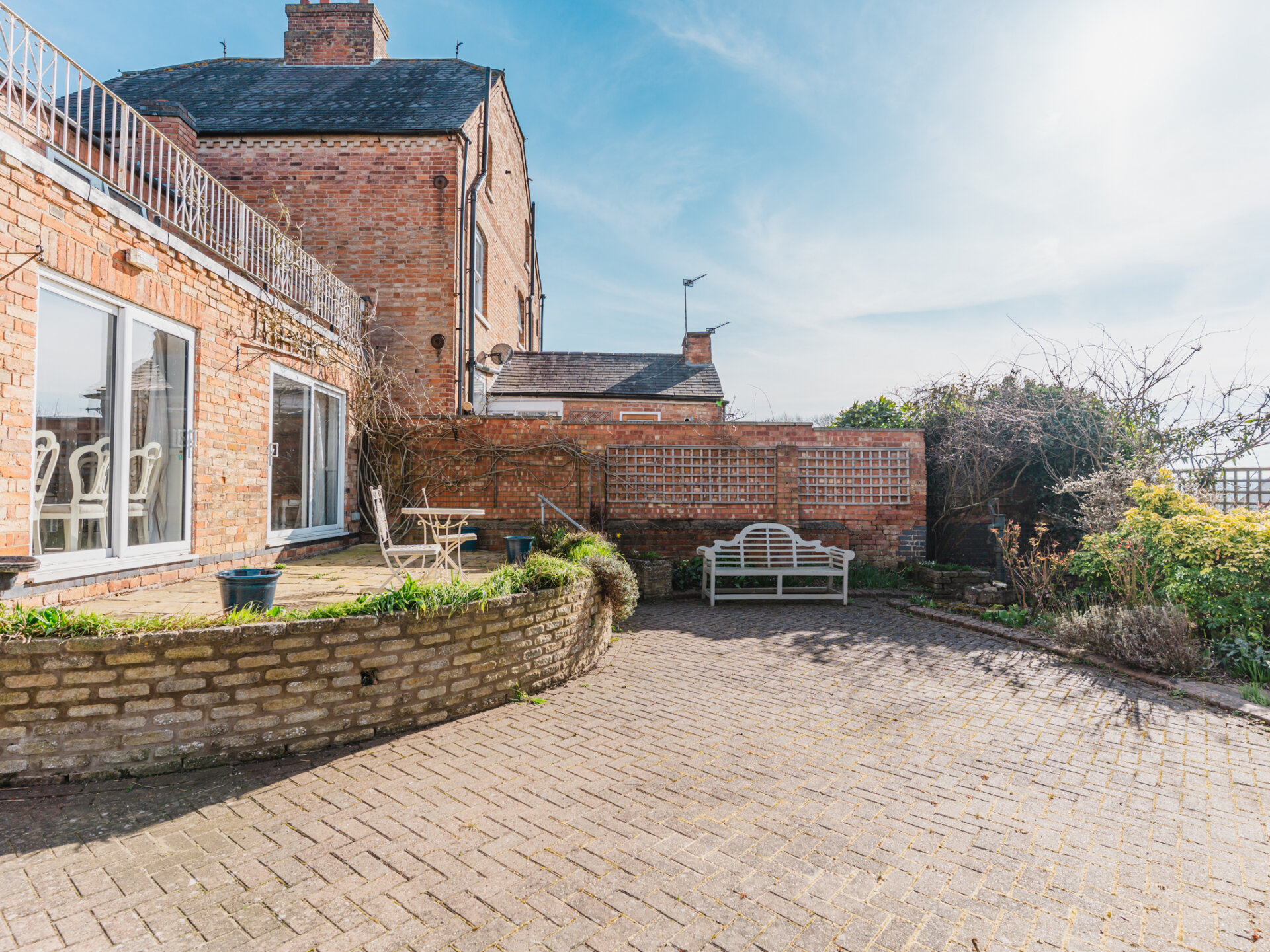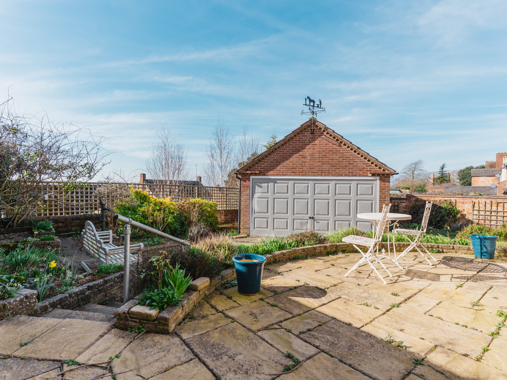 The rear garden is a haven of peace and simplicity, designed to be low-maintenance yet visually delightful. A raised patio area is perfect for al fresco dining or unwinding with a book, while the lawned area and vibrant flower borders provide a splash of natural beauty. Enclosed by fencing and walls, the garden offers both privacy and tranquillity.