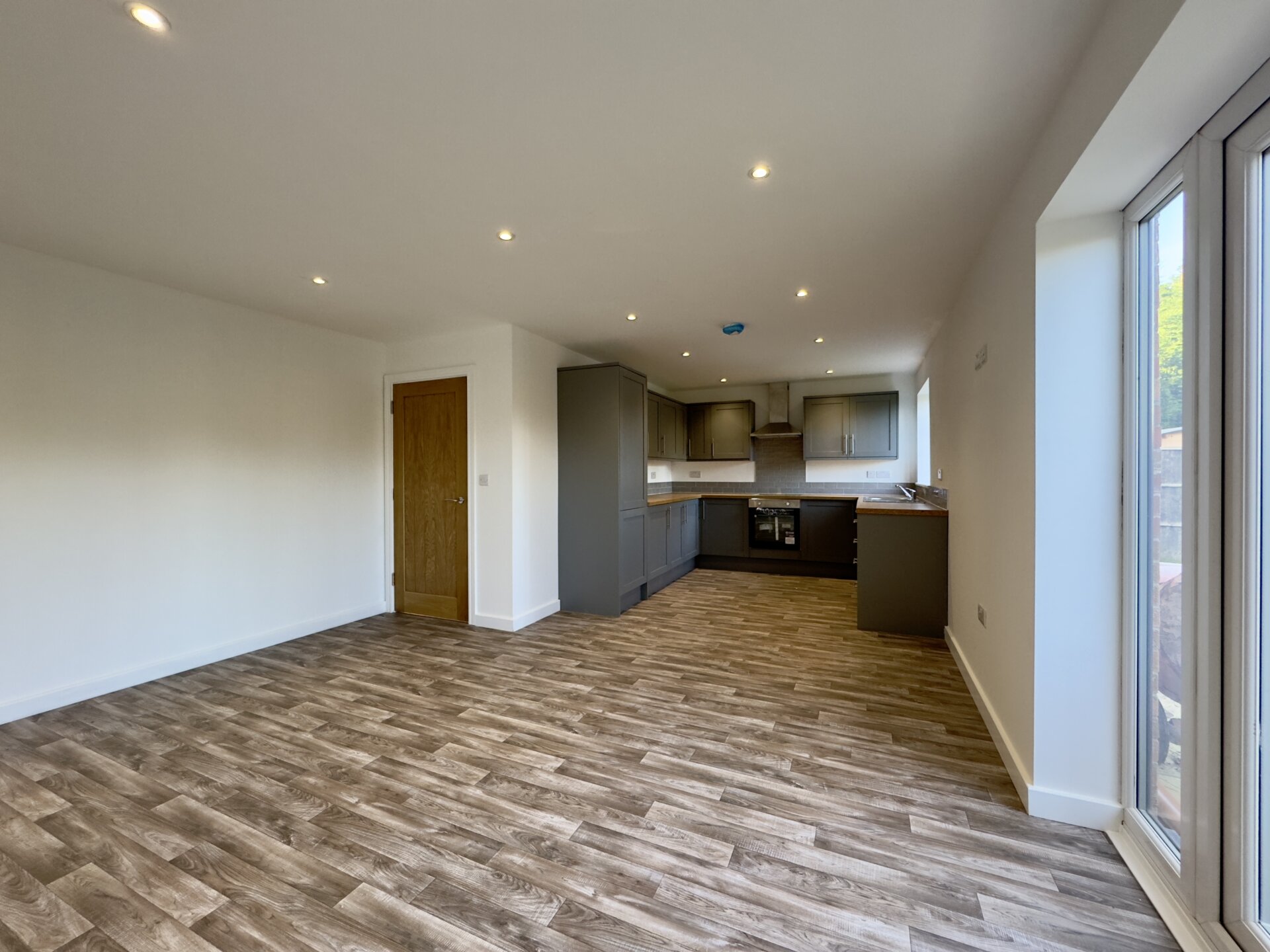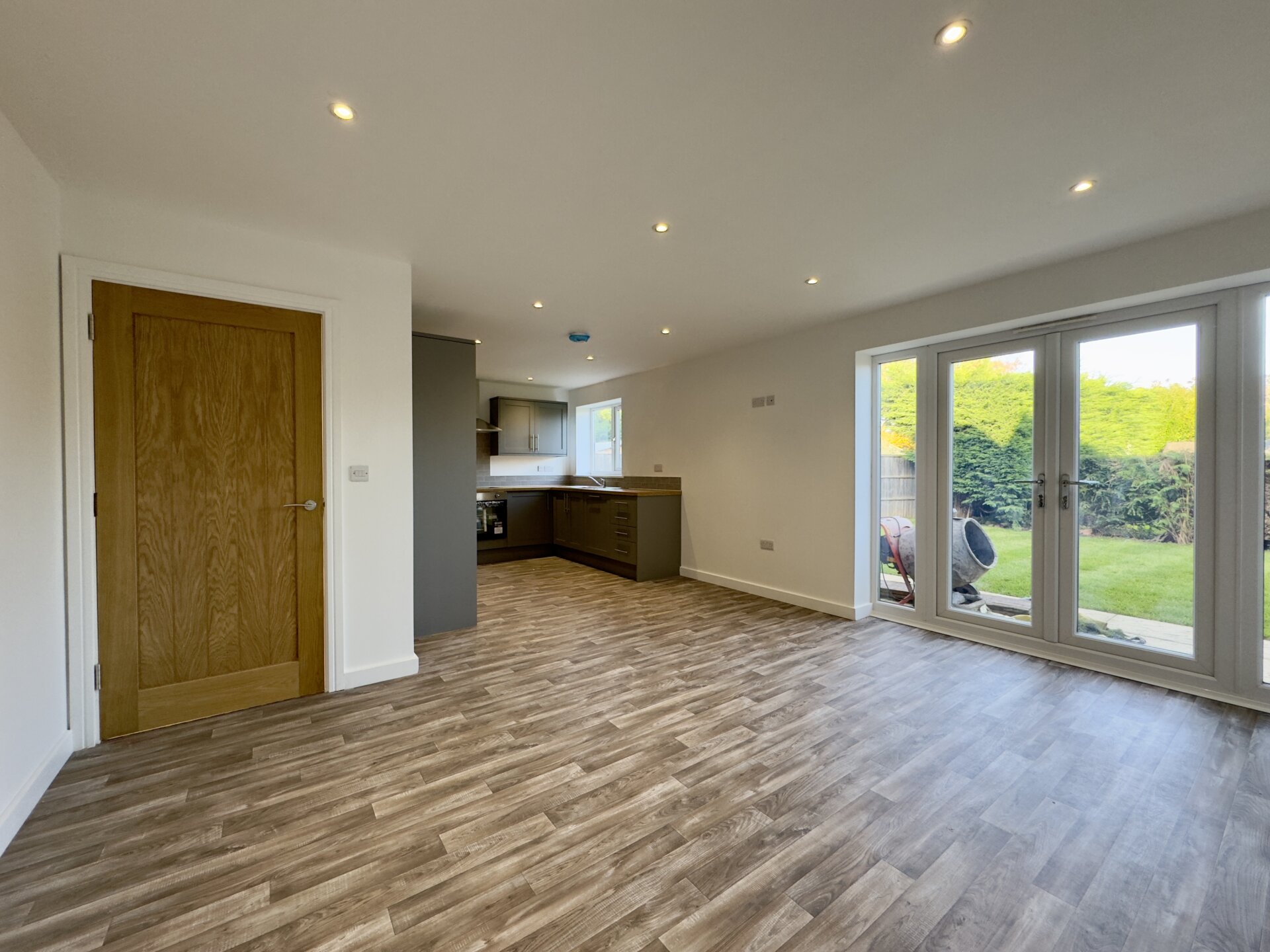 The accommodation comprises entrance hall with ground floor WC, lounge, study, bathroom, utility room, ground floor bedroom with en-suite and a fantastic open plan kitchen diner. The open plan living kitchen which is located towards the rear of the property which is bright and airy due to the French doors which let in an abundance of light. The stylish kitchen is fitted with a range of wall, base and drawer units with an ample amount of work surface over. Complete with an integrated electric oven and gas hob with cooker hood over. There’s also sufficient space for further appliances.