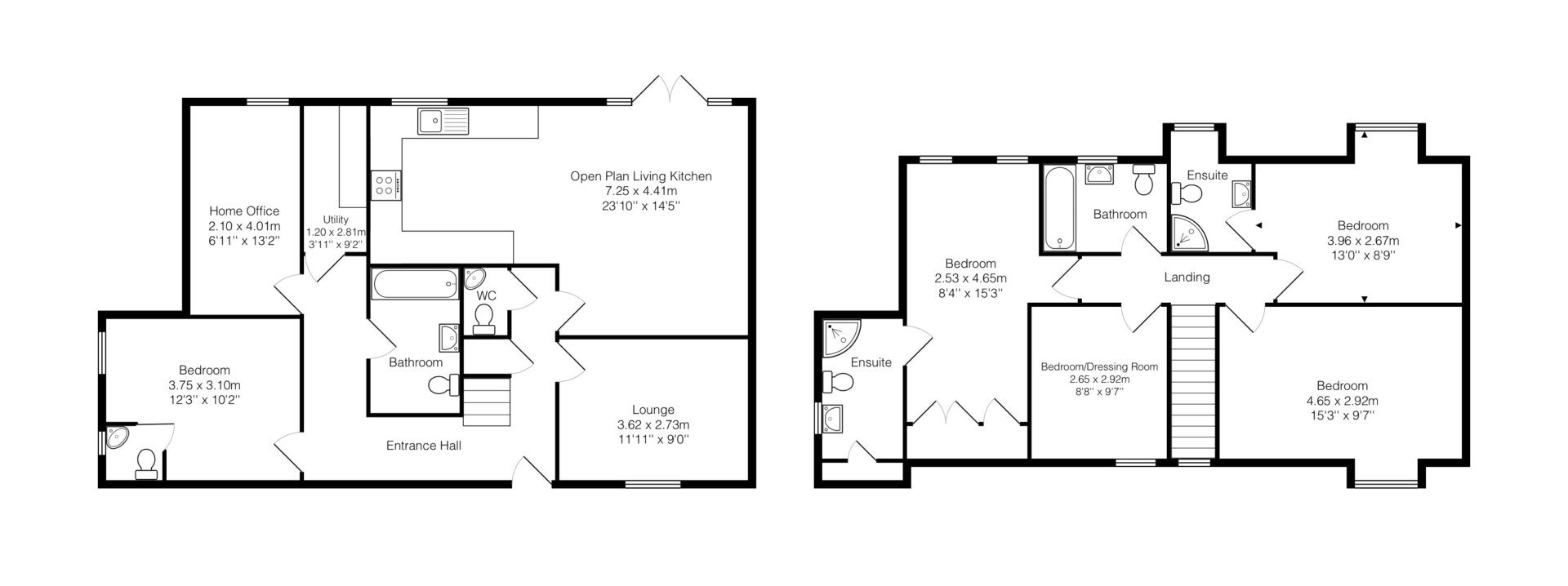 On the first floor are three bedrooms, two of which have en-suite showers rooms. There’s also a generous size dressing room along with the family bathroom.