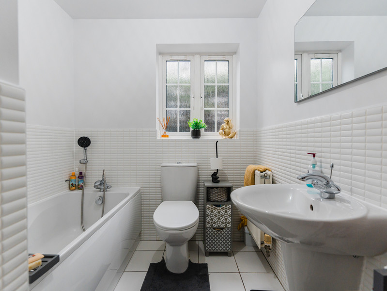 On the first floor are three well proportioned bedrooms, two of which have built in wardrobes. The main bedroom is of a generous size and has an en-suite shower room. The family bathroom is fitted with a white three piece suite and finished with complimentary tiling.