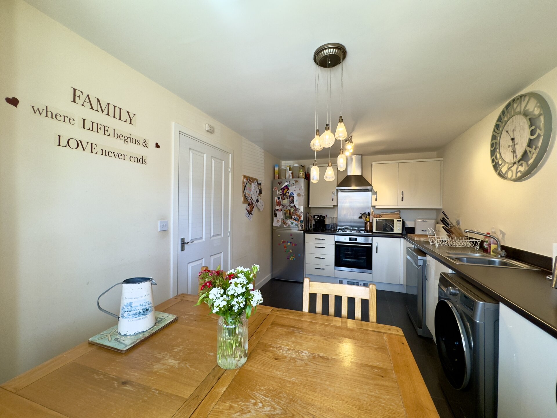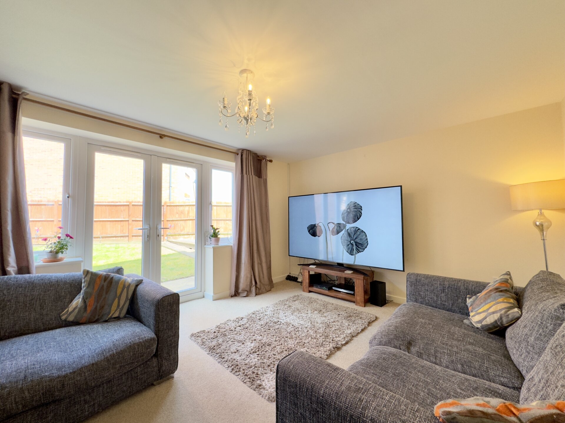 Upon entering the property, you are greeted by a welcoming hallway with ground floor WC, useful storage cupboard and stairs leading to the first floor. From the hallway you enter a well-proportioned living room, ideal for relaxing and entertaining guests. The garden can be accessed from the lounge via French doors. The adjacent kitchen diner provides the perfect setting for family meals and gatherings, while the fitted kitchen is not only stylish but also equipped with an integrated oven and hob, making meal preparation a breeze.