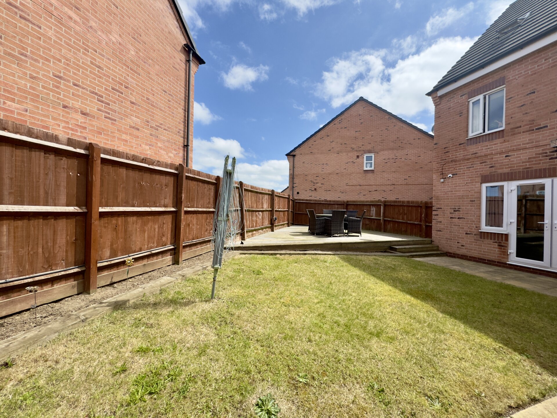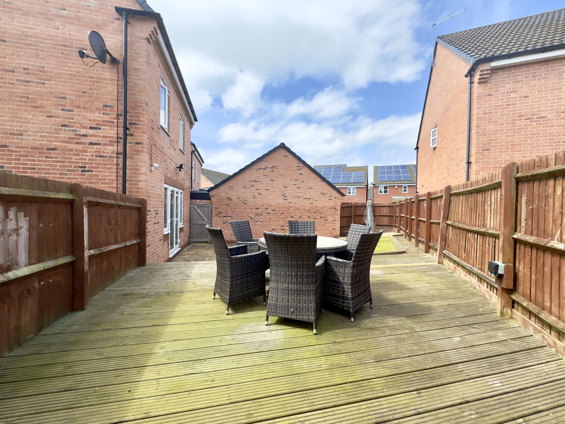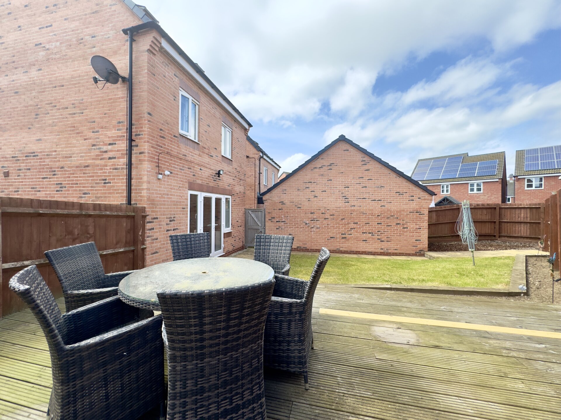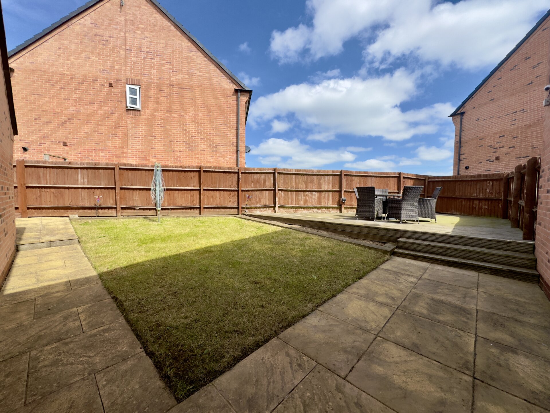 To the rear of the property is an enclosed garden with a small paved patio, lawn and a raised decked area, the perfect space for al-fresco dining with family and friends during those warmer months of the year. The garden is secured with fenced boundaries and gated side access.