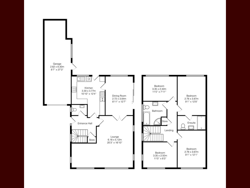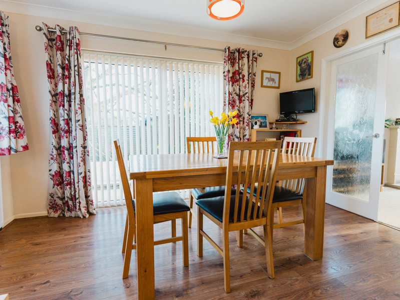 The accommodation comprises entrance hall with two useful storage cupboard, ground floor WC and having stairs leading to the first floor. The lounge is bright, airy and of a good size with large windows letting an abundance of natural light. The dining room is accessed from the lounge through double doors and has a large window to the rear overlooking the rear garden. There’s also sliding patio doors to the side giving easy access to the garden. The kitchen is fitted with a range of wall, base and drawer units with an ample amount of work surface over. Integrated appliances to include fridge freezer, dishwasher, double oven and hob with cooker hood over.