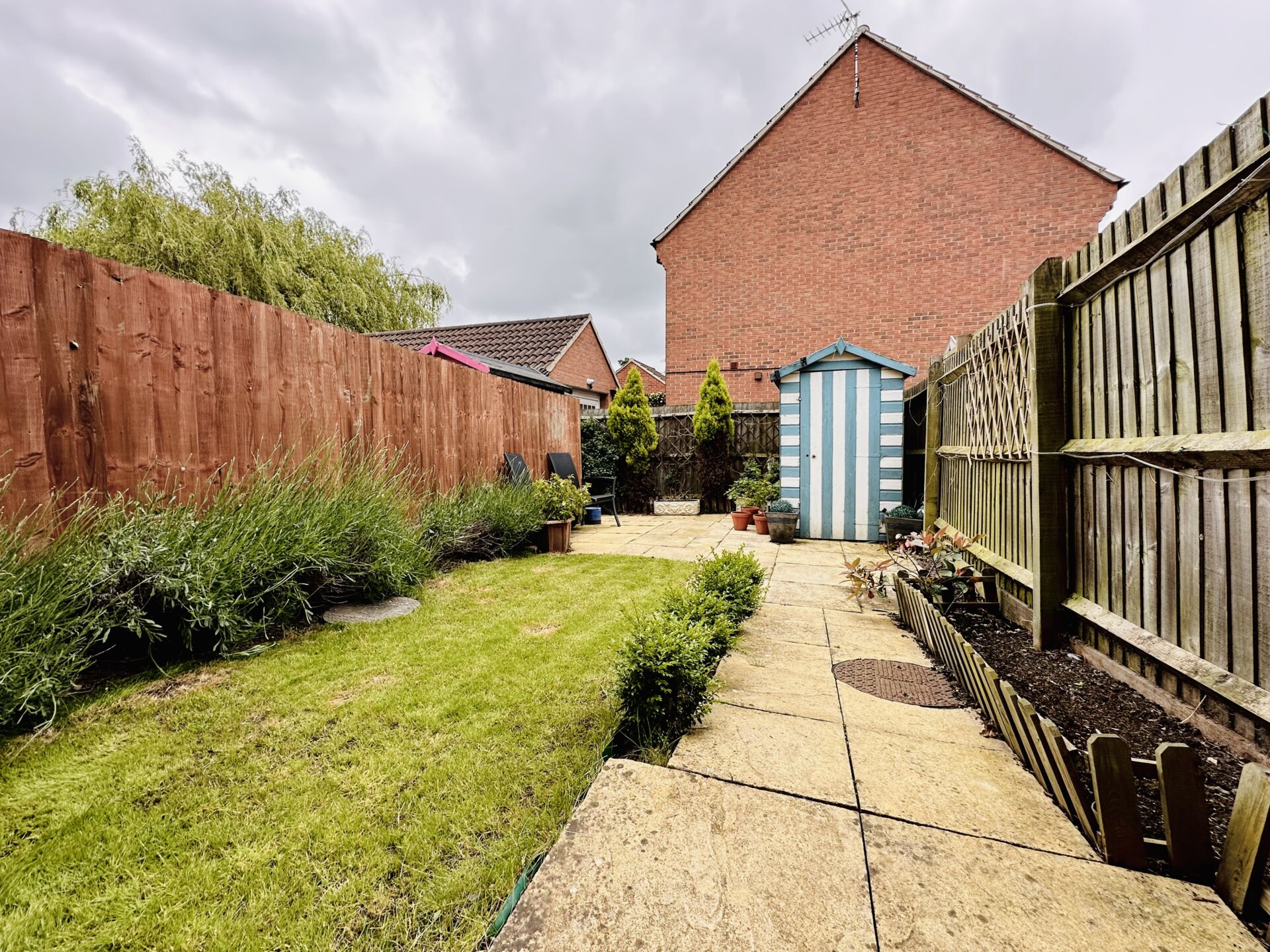 Outside to the front, there are two allocated parking spaces, and a green shrubbed foregarden adds to the curb appeal. To the rear, there is a patio area and a grass lawn. The garden benefits from enclosed fencing and gated rear access.