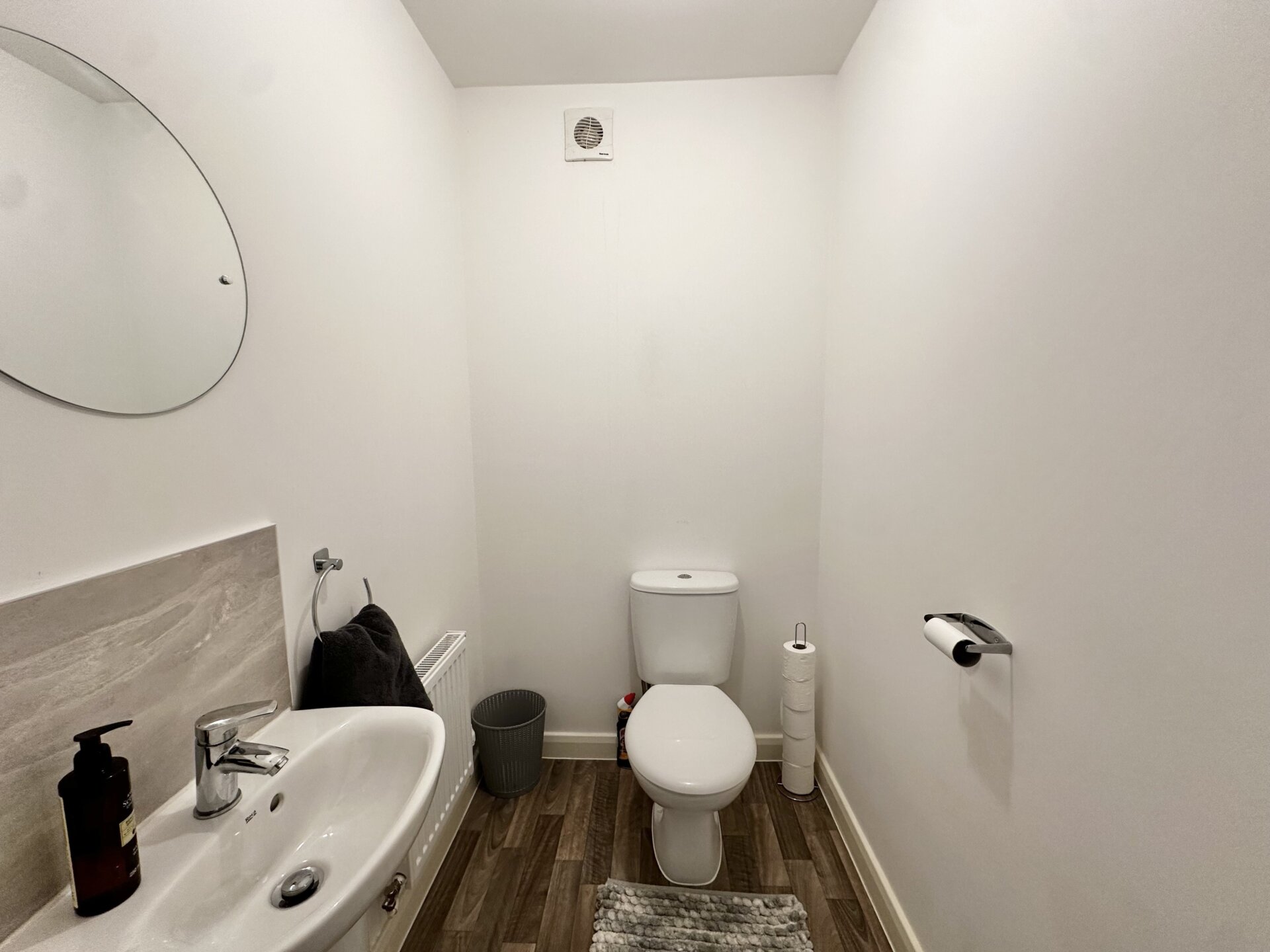 The property features a spacious driveway with parking for two cars and a convenient downstairs WC, upstairs are two generously sized double bedrooms along with a family bathroom which comprises of over bath shower, wash basin and W.C.