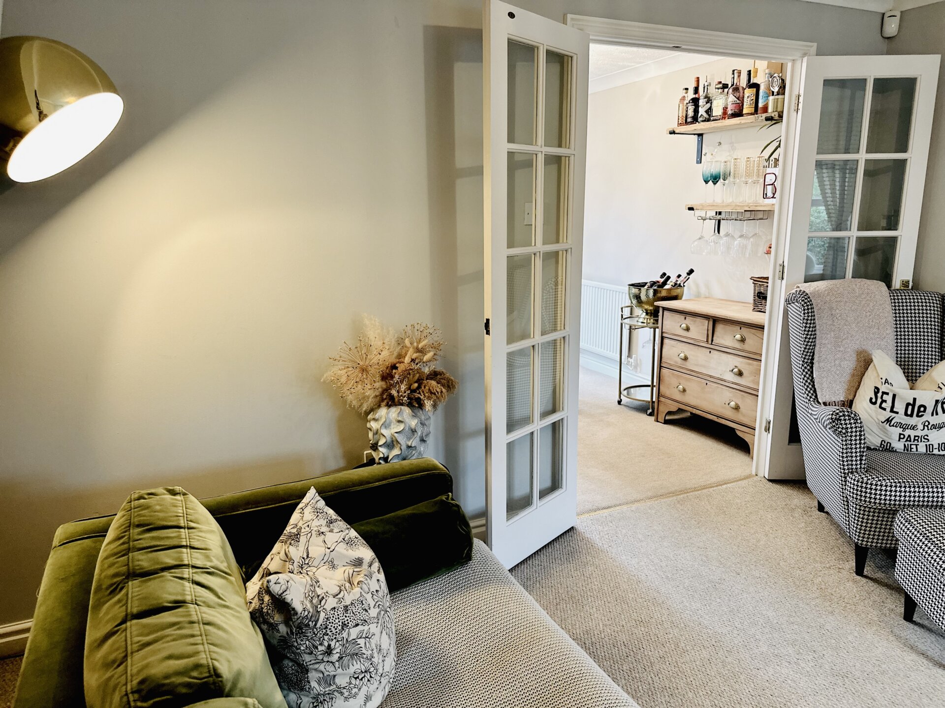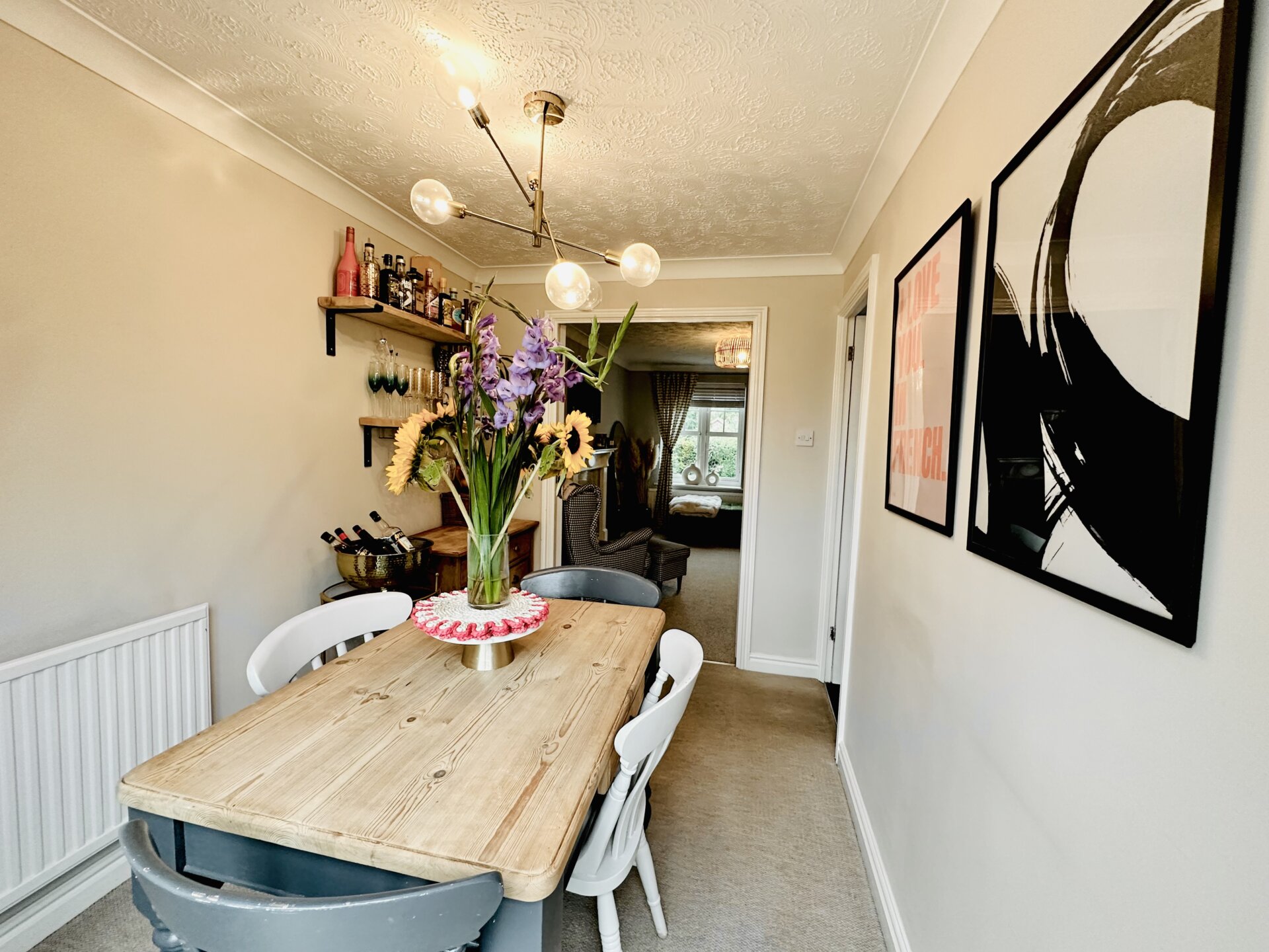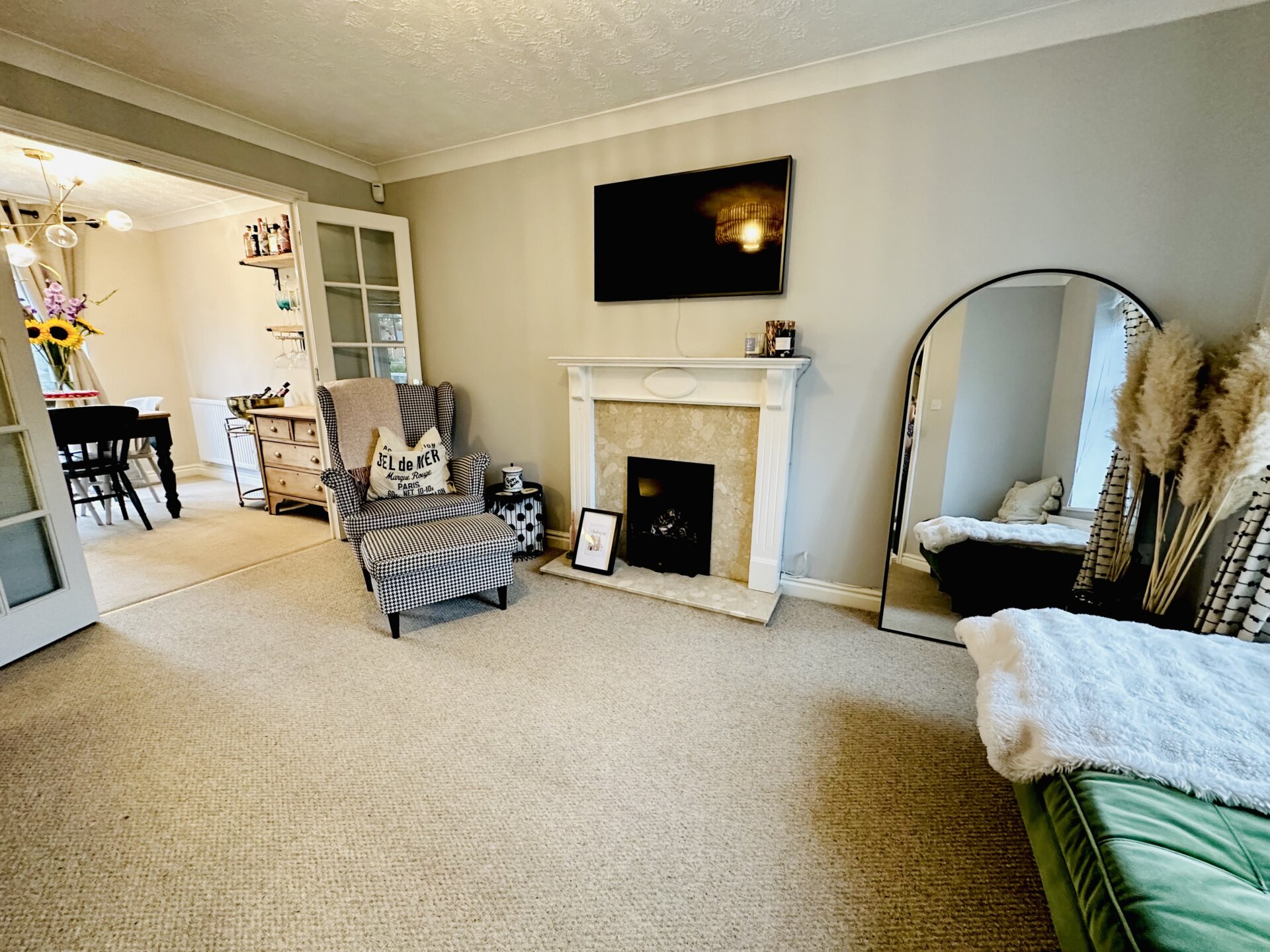 To the front of the property is a light and airy lounge with a feature fireplace with gas fire and glazed double doors into the dining room. The dining room has French doors leading directly onto the rear patio ideal for summer entertaining.
