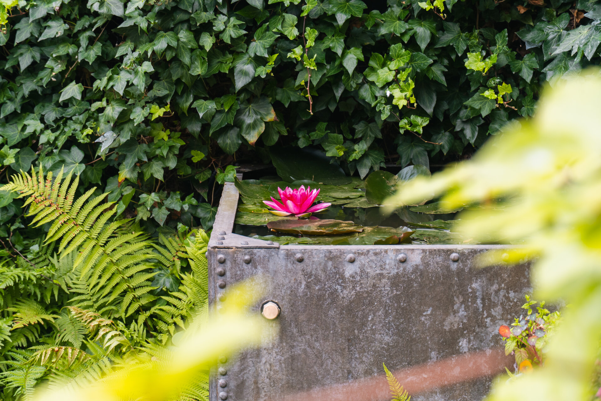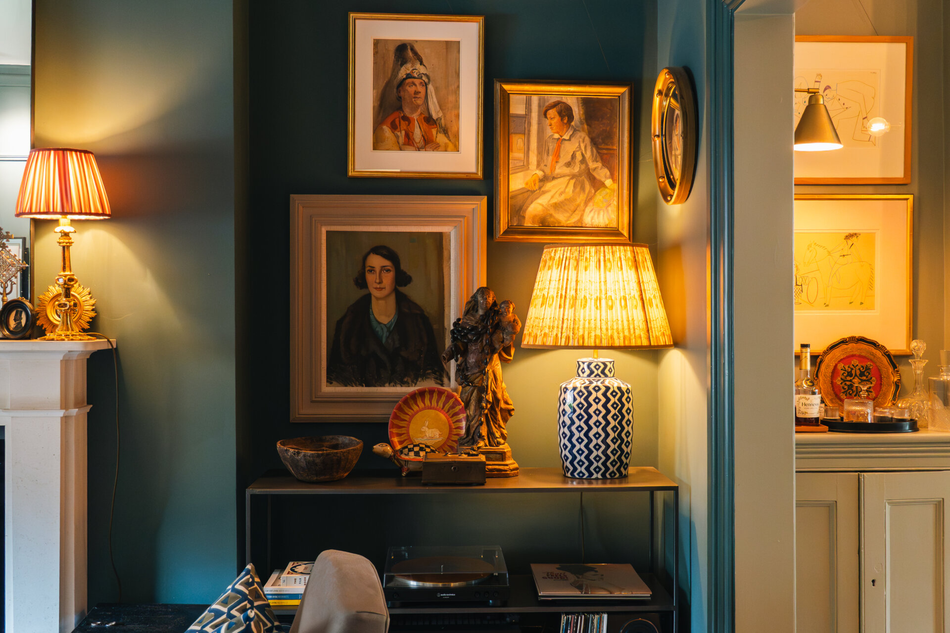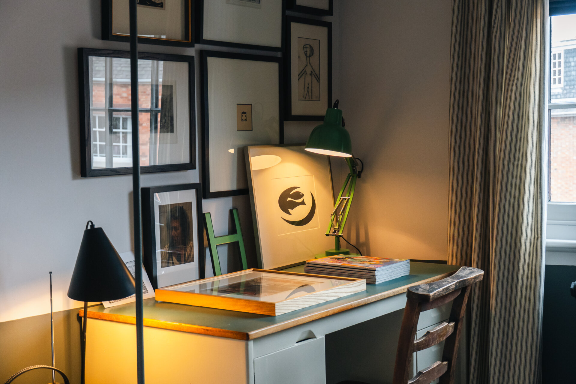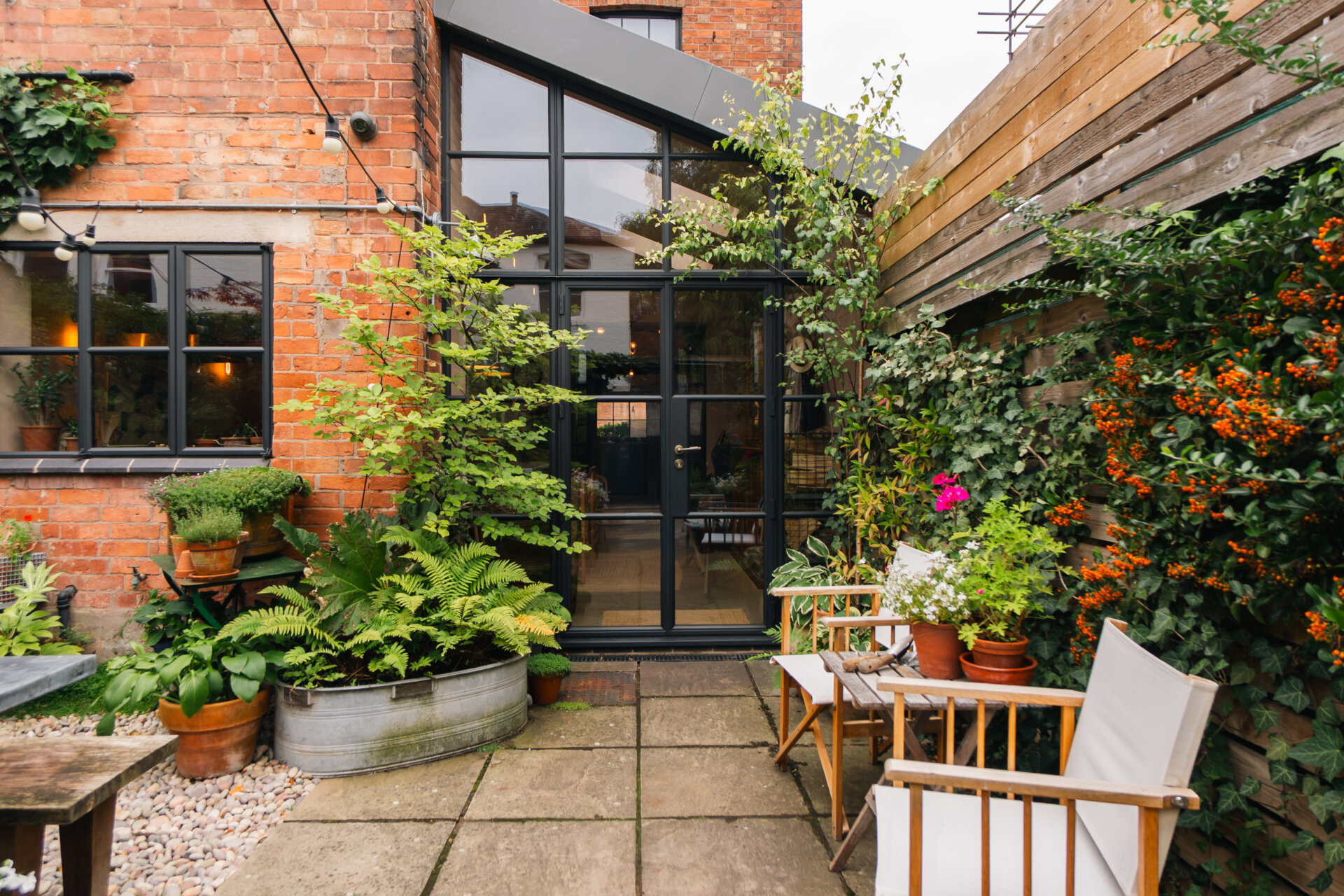 Outside, the rear courtyard has been landscaped with structure and softness in mind. Walls are painted in Little Greene’s ‘Jack Black’ to echo the house’s exterior, softened by mature ivy and clematis. A repurposed water tank forms an urban pond, and architectural planting is lit for evening use. Beyond, a timber gate leads to private off-street parking for two cars, a rarity to have in the city centre.