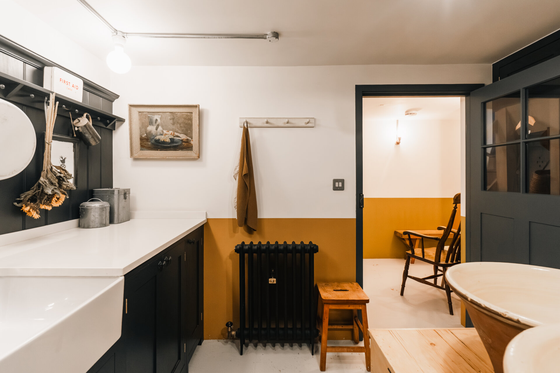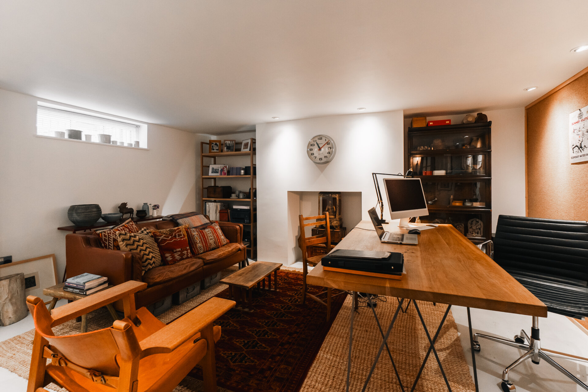 A particular highlight is the well configured lower-ground floor basement. Unusually bright for a house of this type, a quiet study occupies the front, with a WC, and a utility room with deVol’s ‘Pantry Blue’ shaker joinery and integrated white goods sit at the rear. The space found here could be altered depending on the next owner’s requirements.