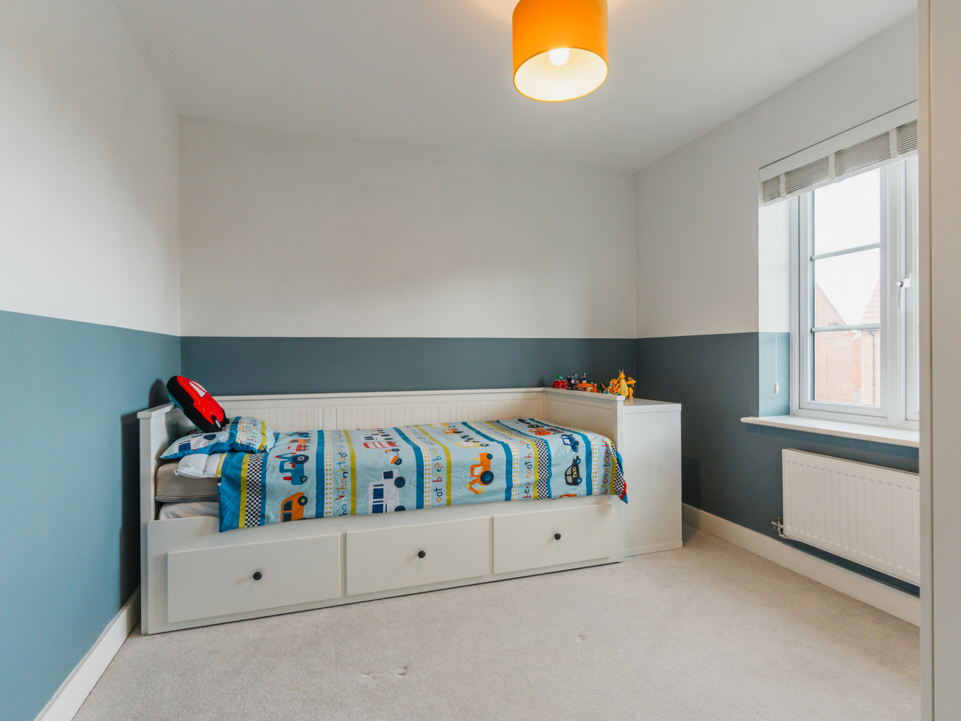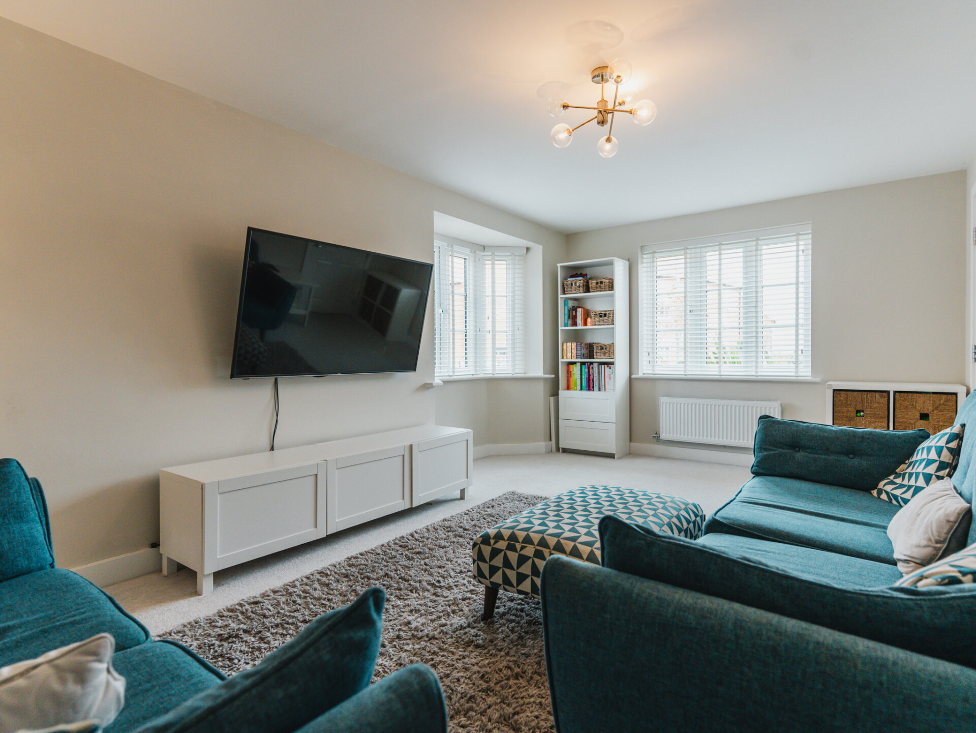 Unwind in the generous living room, bathed in natural light streaming through the attractive bay window, offering a cozy retreat for relaxation and entertainment.