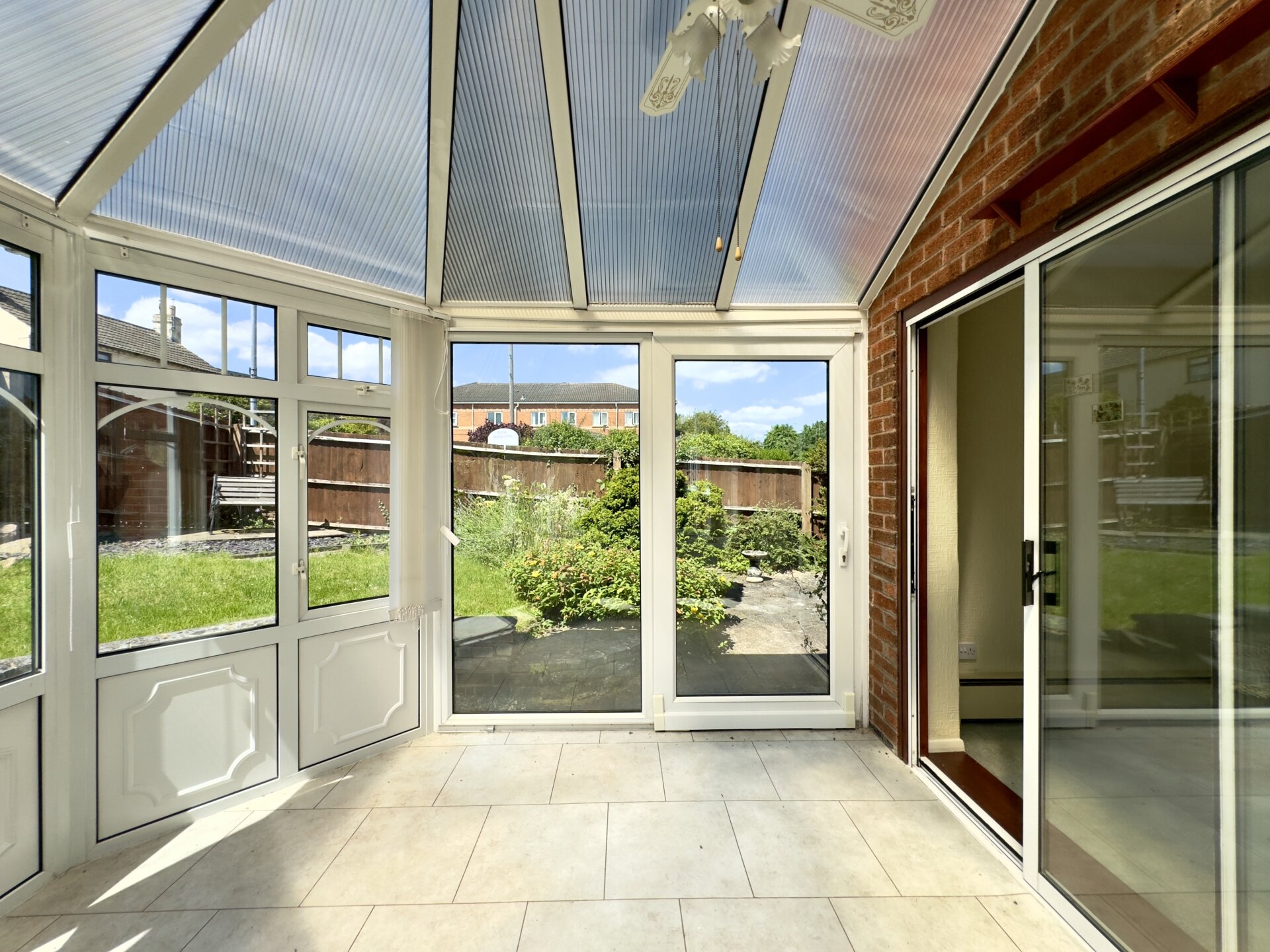 The internal accommodation comprises entrance hall with useful storage cupboards, ground floor WC and having stairs leading to the first floor. The lounge is of a generous size with a feature fire place and bay window to the front which lets in an abundance of lights. An archway from the lounge gives access to the dining area which has patio doors opening to the conservatory. The conservatory is a pleasant space with views looking out to the colourful, well stocked rear garden. The extended kitchen is fitted with a range of wall, base and drawer units with an ample amount of work surface over.