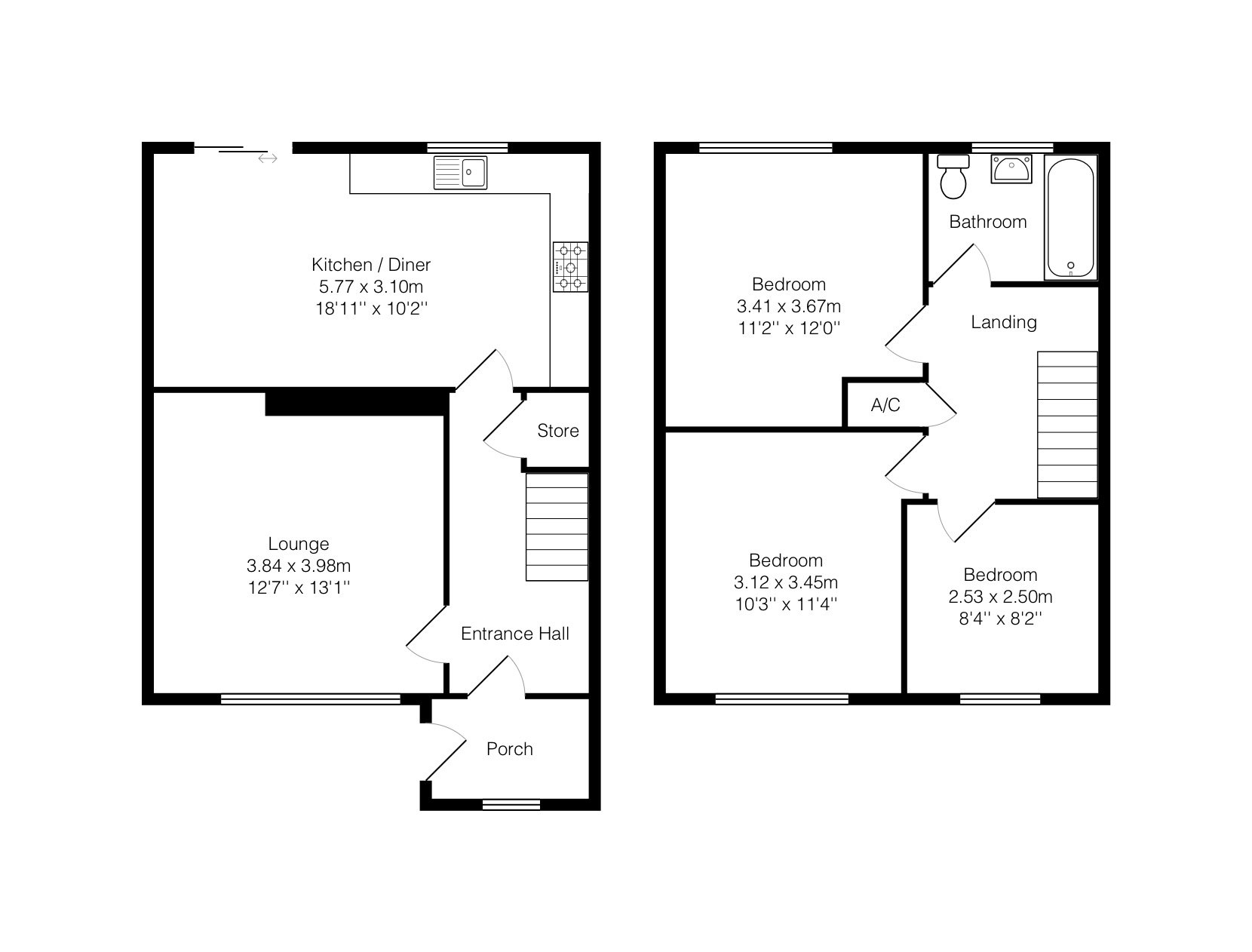 On the first floor are three well proportioned bedrooms along with the family bathroom. The bathroom is fitted with a white three piece suite and finished with complimentary wall tiling.
