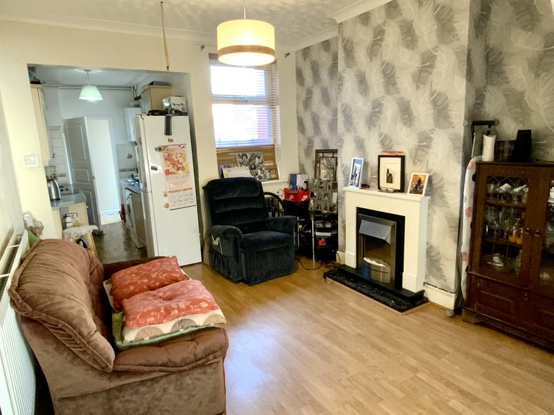 Entry to the property is via the door leading into the open plan lounge and dining room, with traditional coving, built in meter cupboard and wooden laminate floor throughout with windows to the front and rear with the staircase accessed via a door to the centre rising to the first floor.