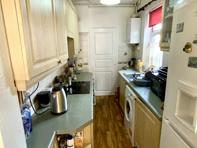The kitchen has a range of base and wall units with work surfaces over, inset electric oven, ceramic hob and extractor above, stainless steel sink and drainer with mixer tap, boiler to the wall and plumbing for washing machine with window to the side and door leading through into the rear lobby.